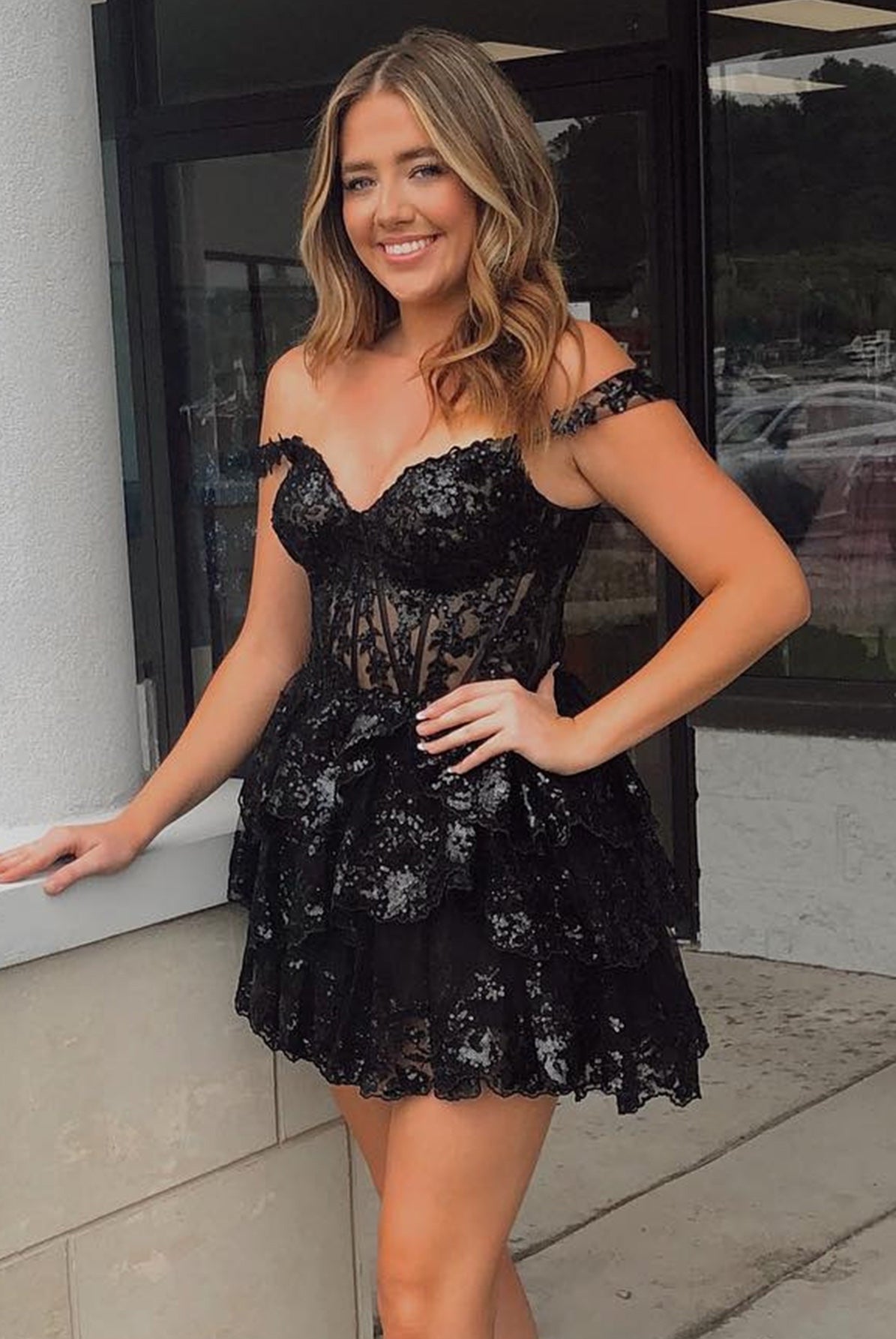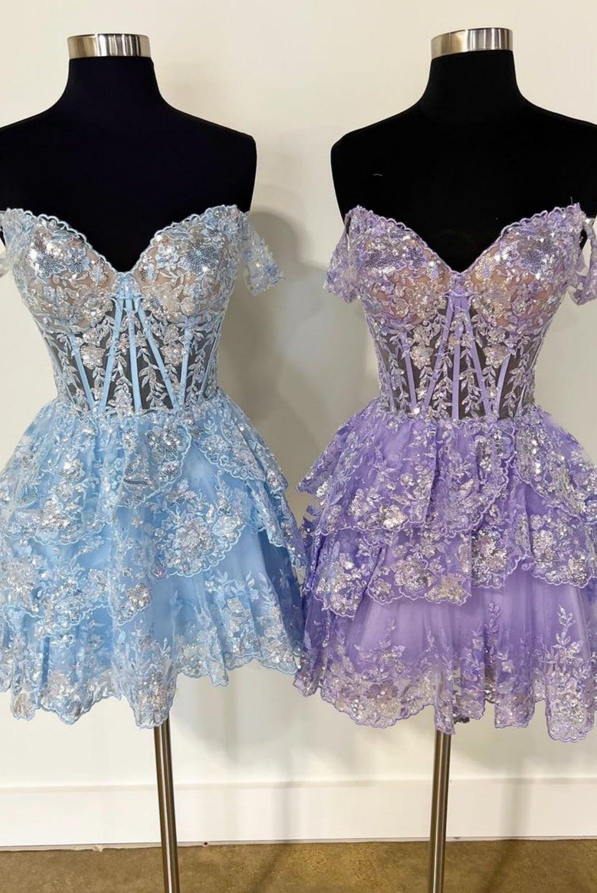 14 reviewsA-Line Navy Blue Sweetheart Tiered Short Homecoming Dress