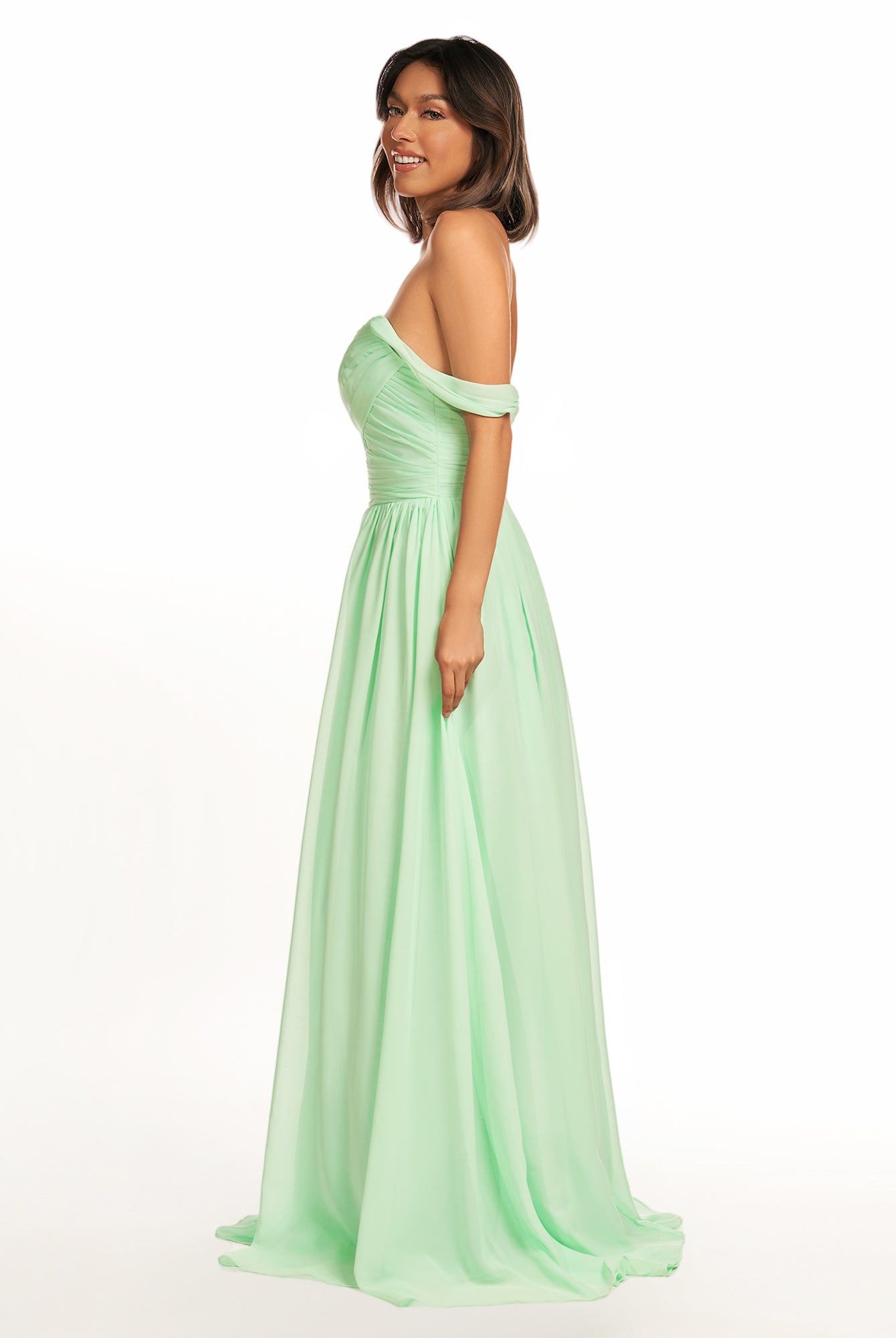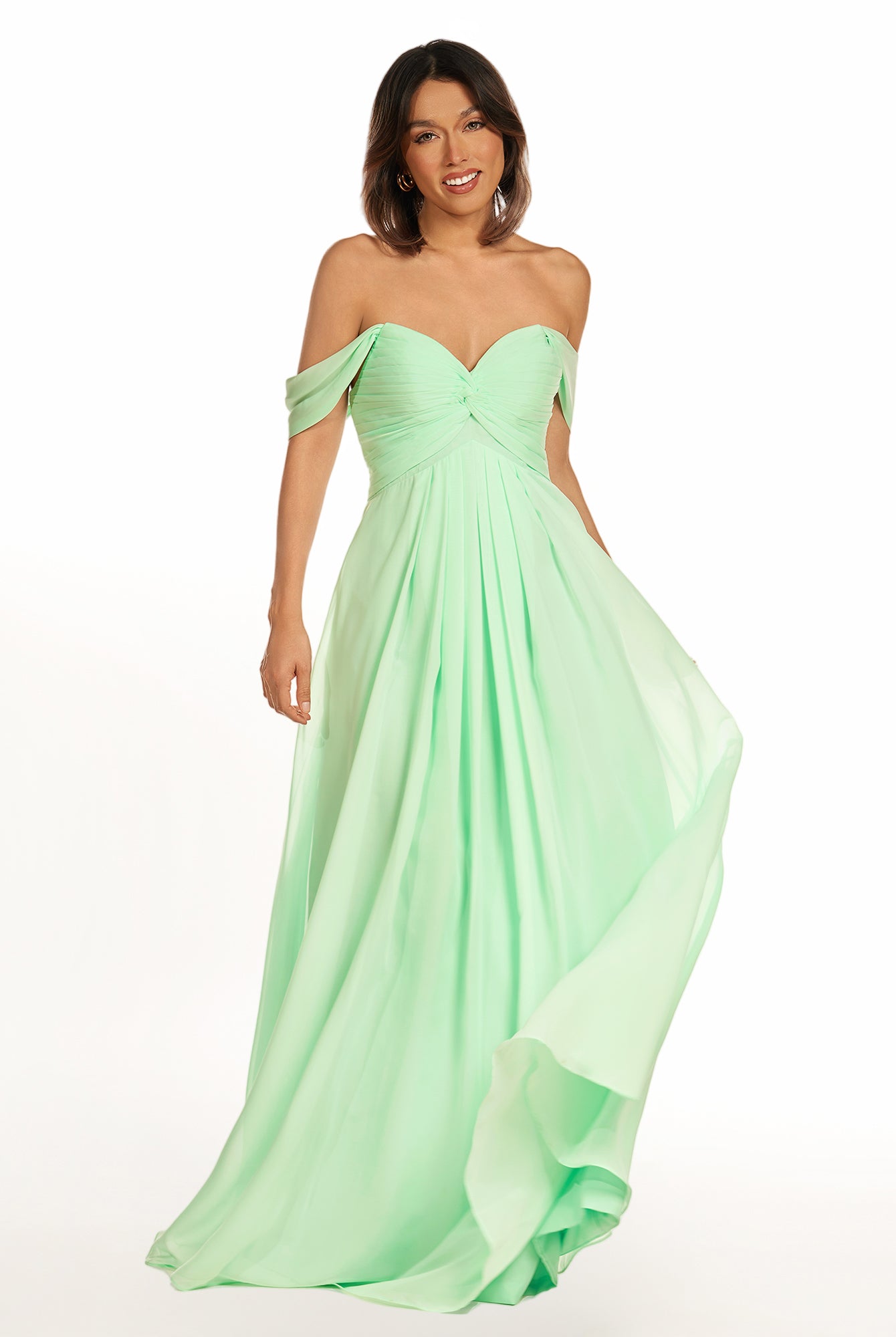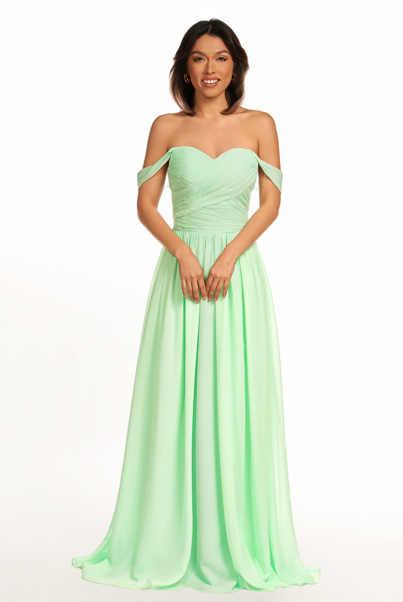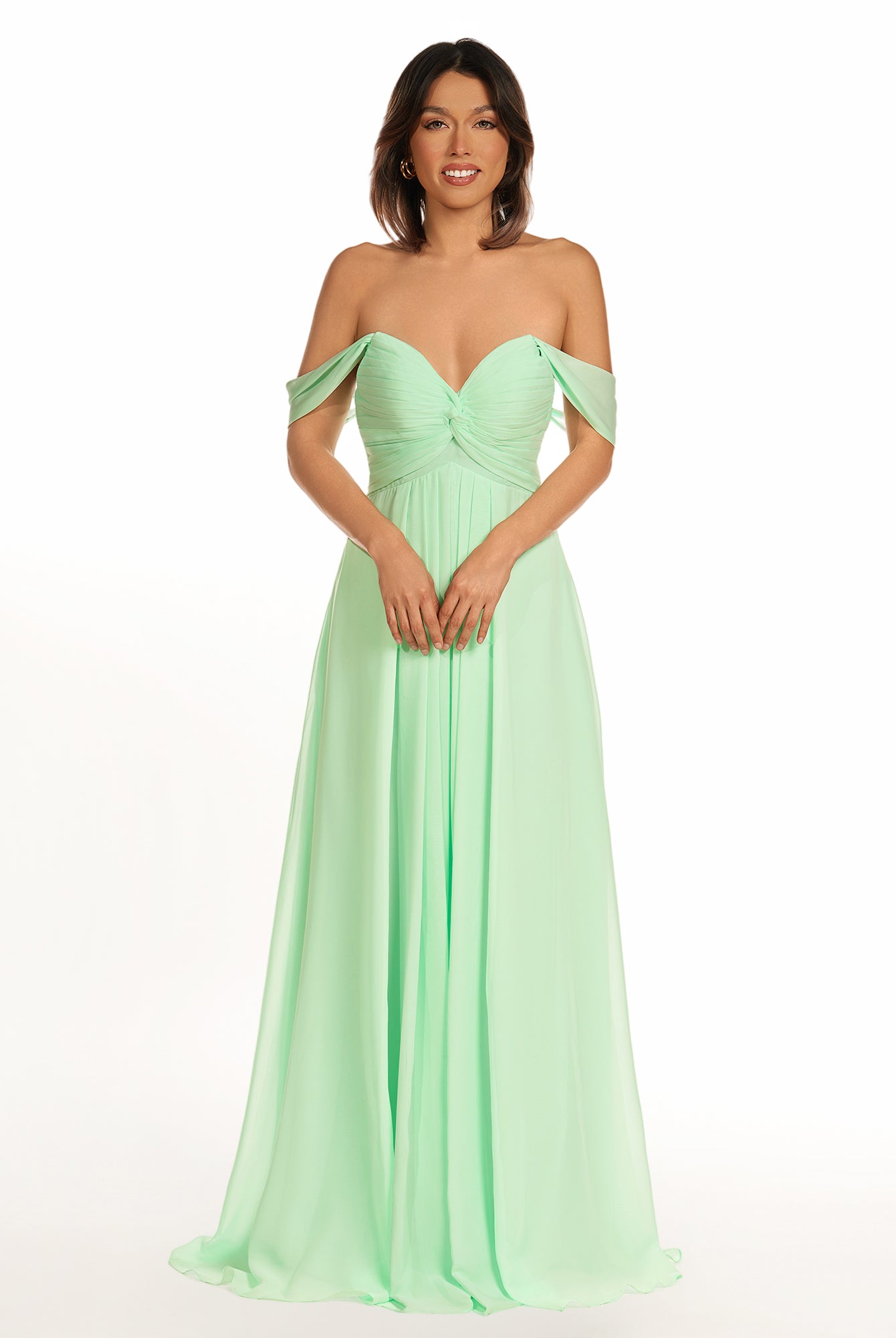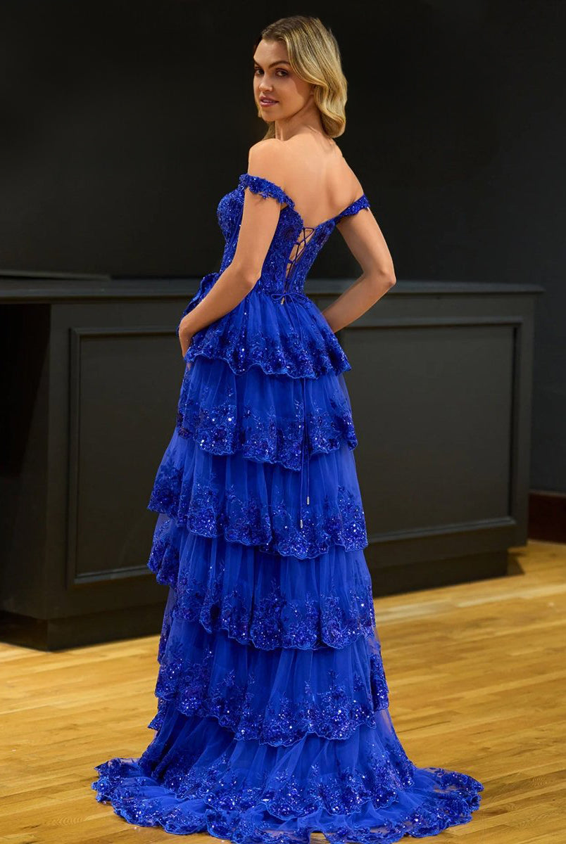 17 reviewsCapri | A-Line Lace Off-the-Shoulder Tiered Long Prom Dress with Slit