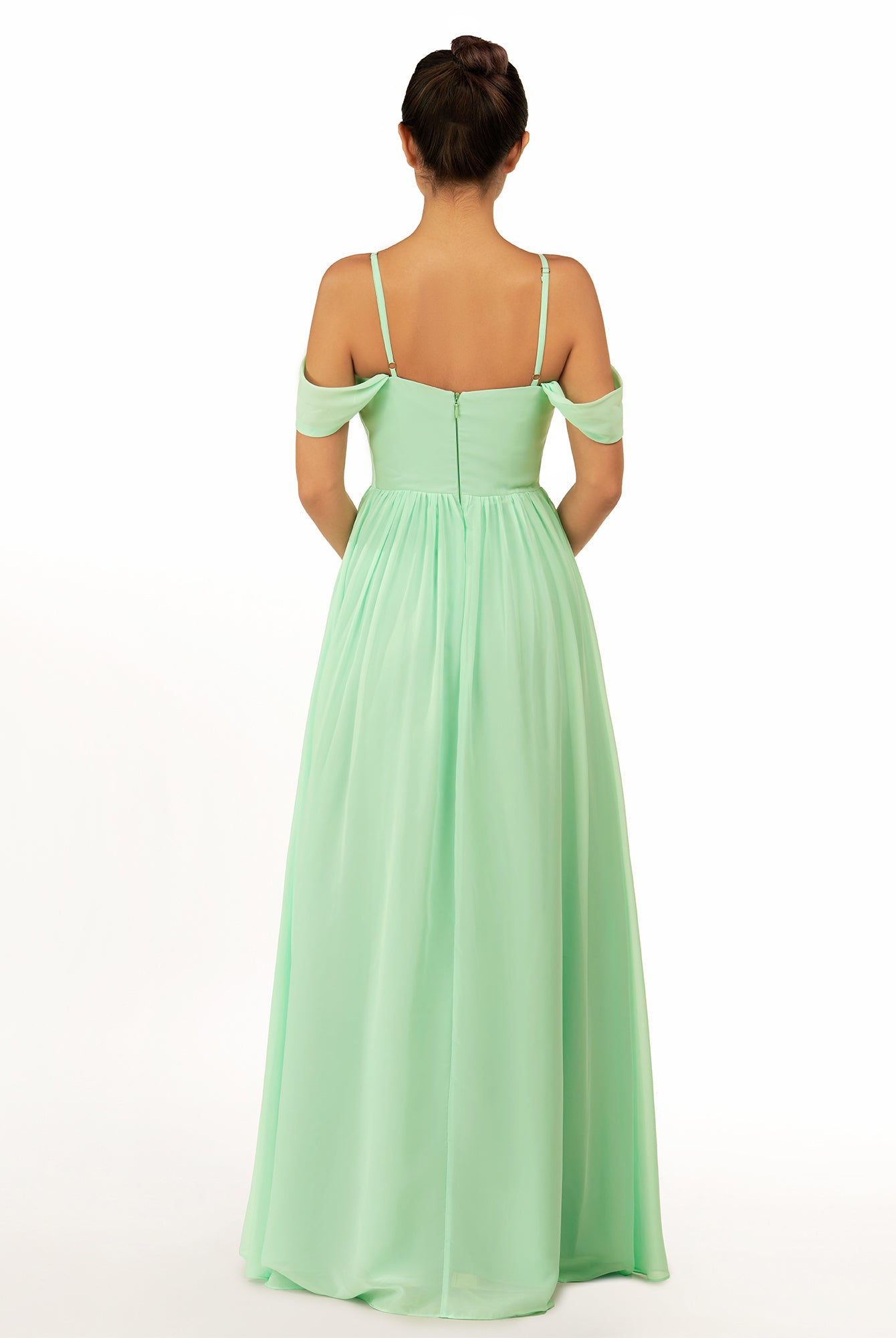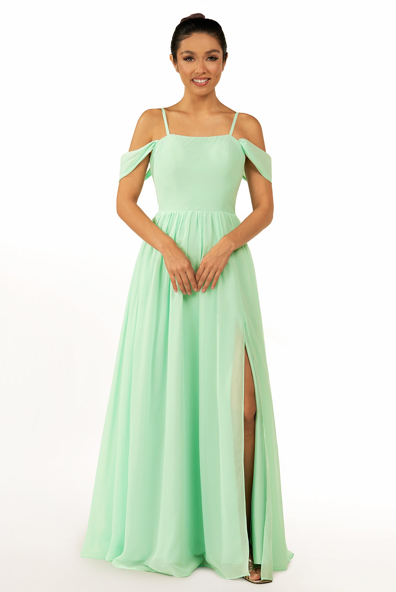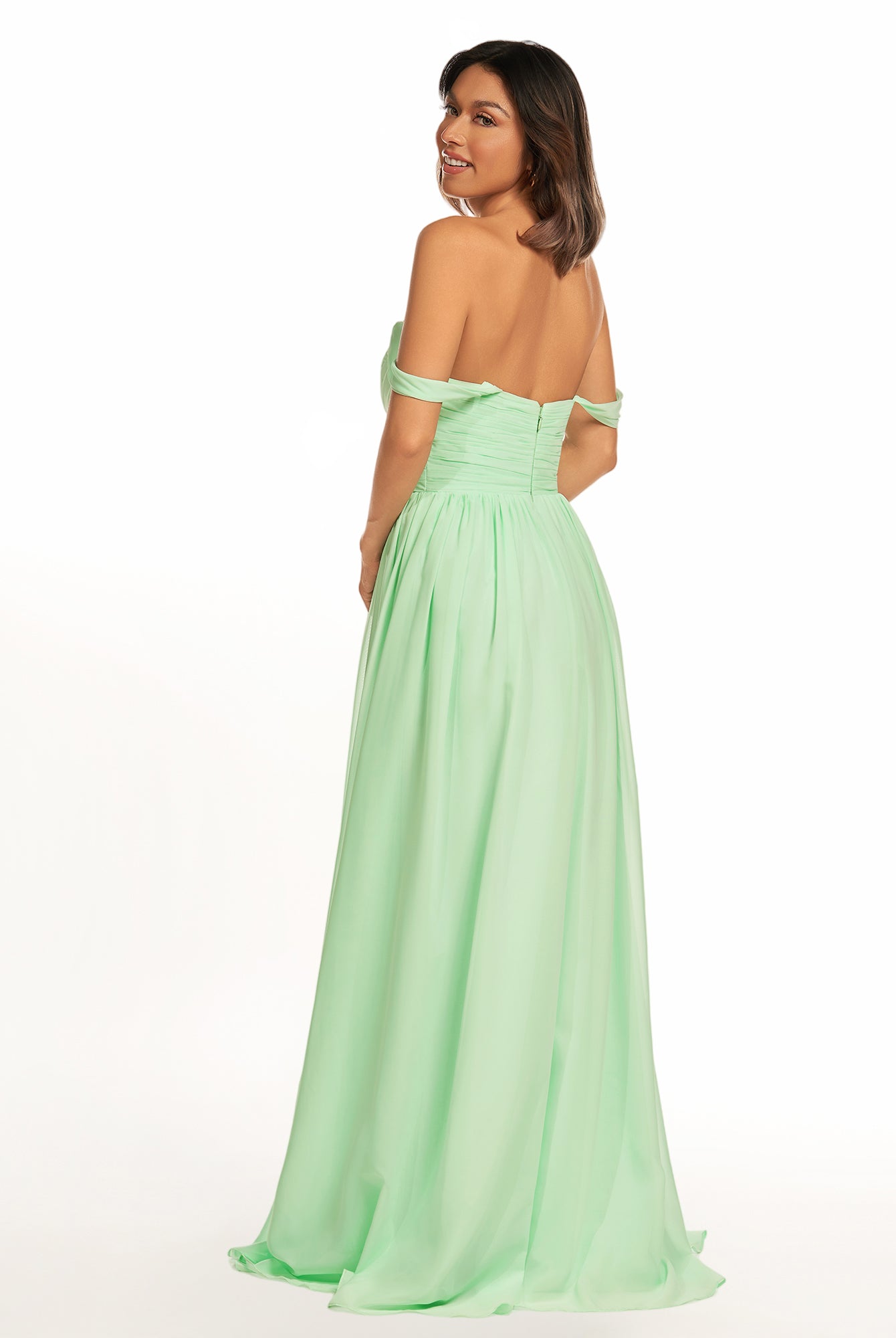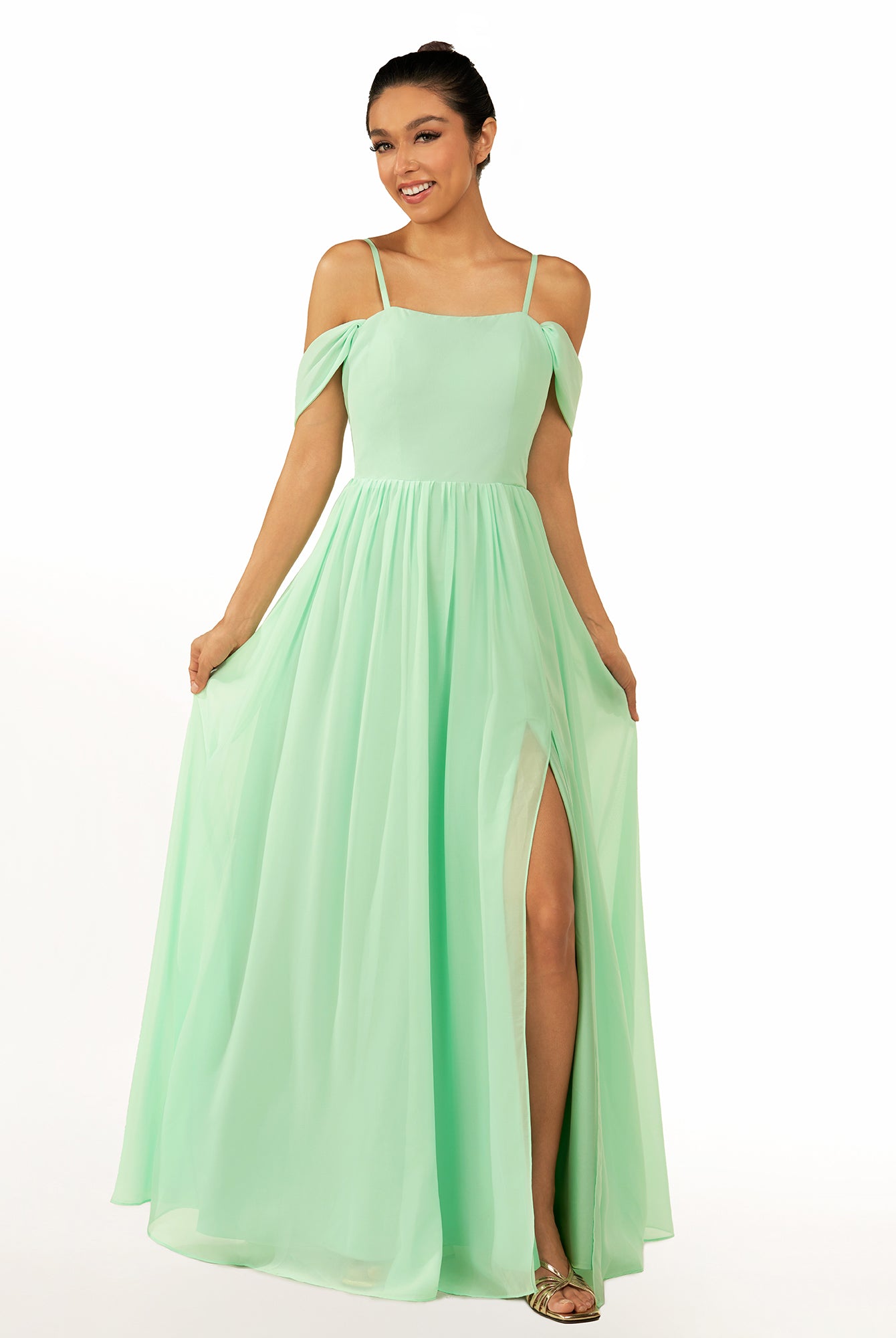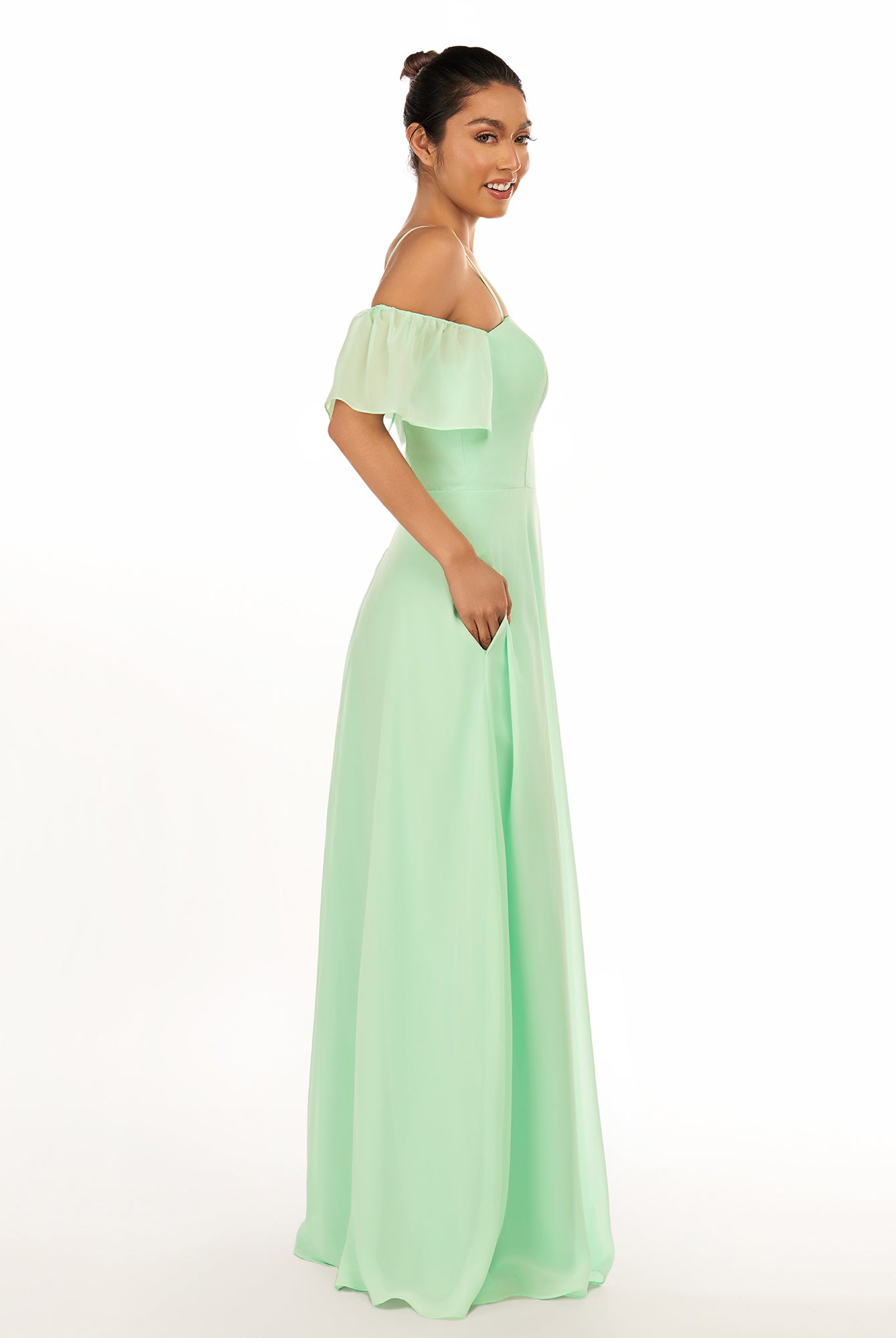 17 reviewsCapri | A-Line Lace Off-the-Shoulder Tiered Long Prom Dress with Slit