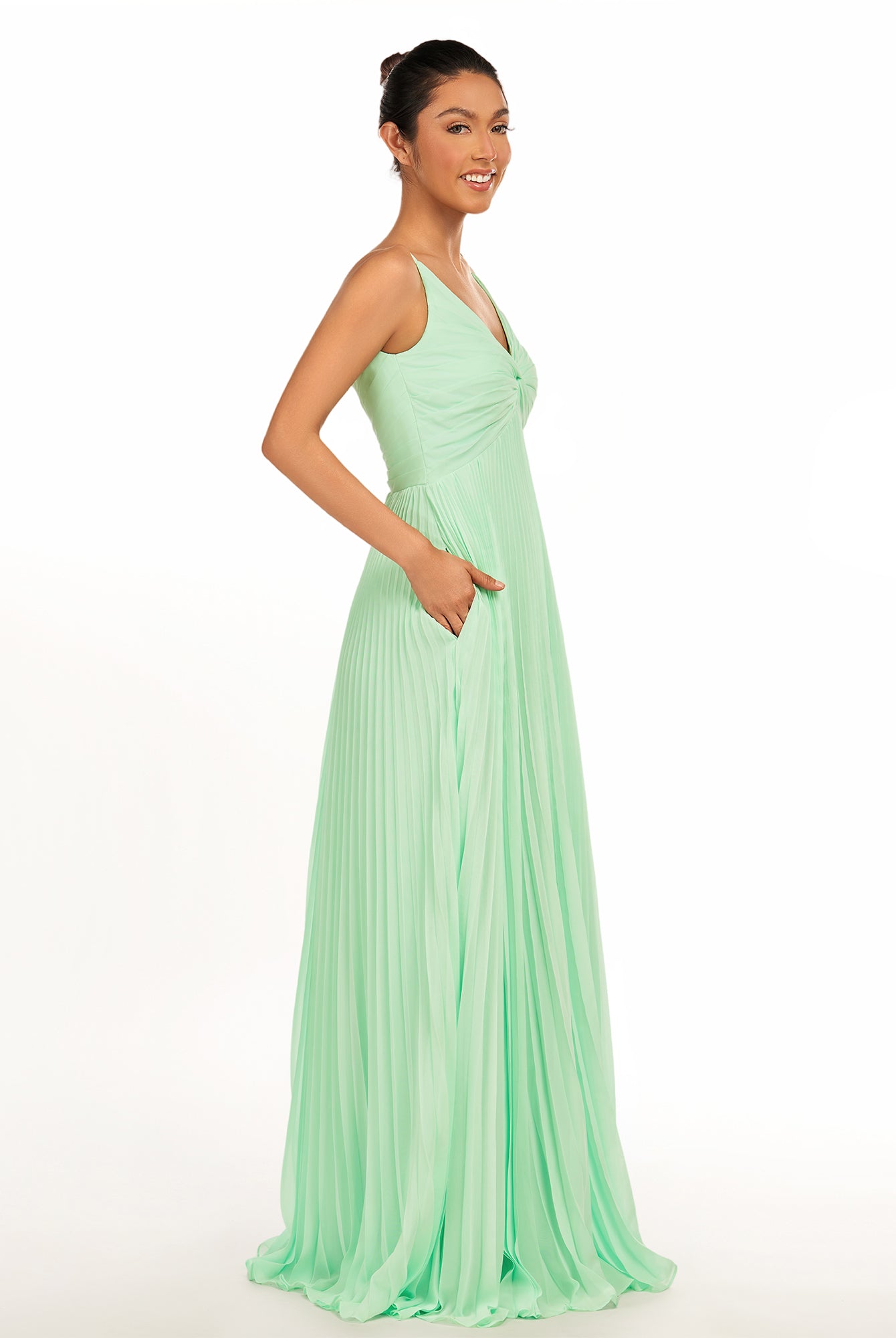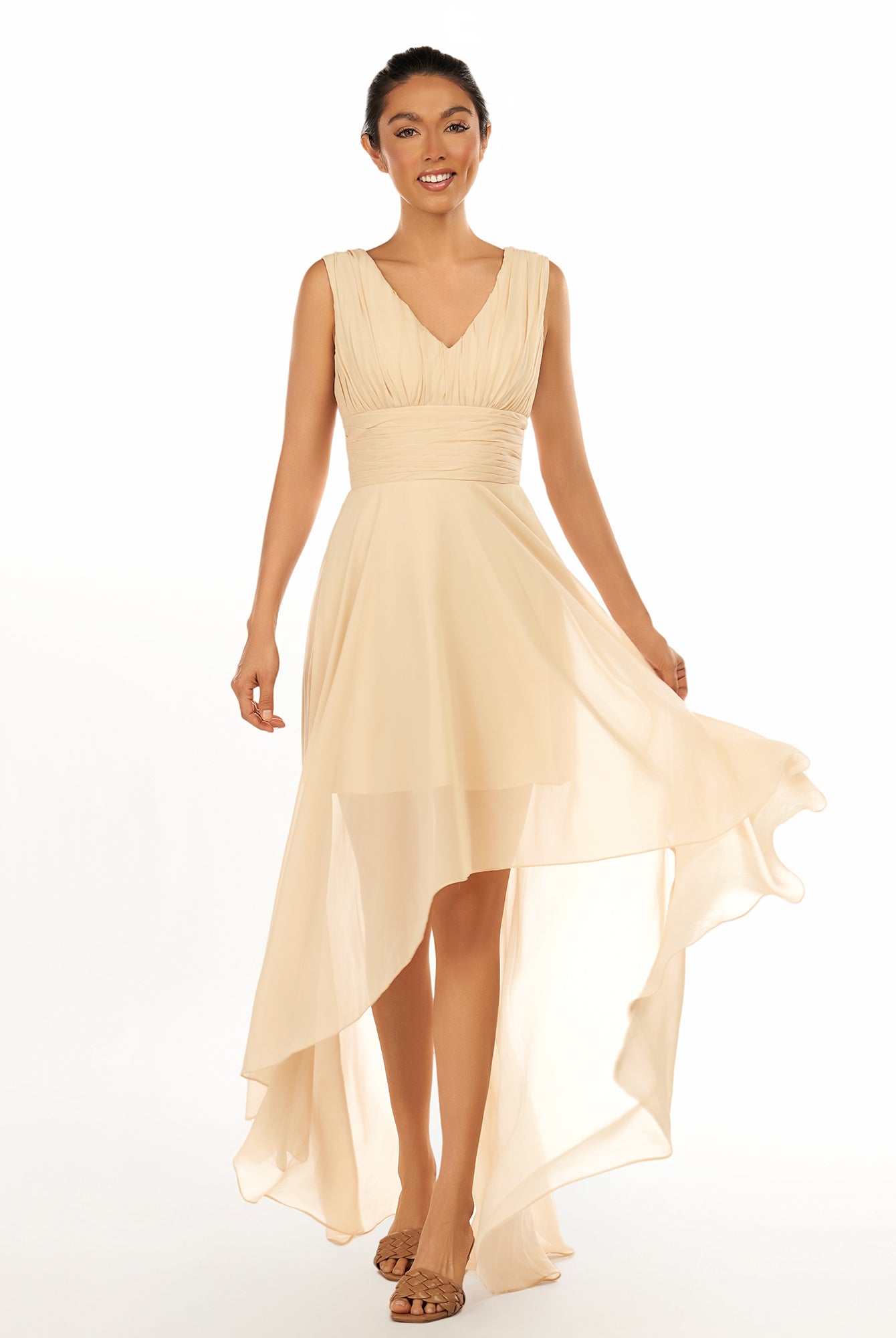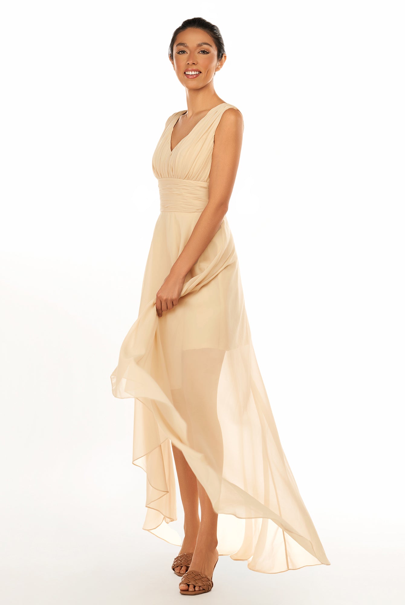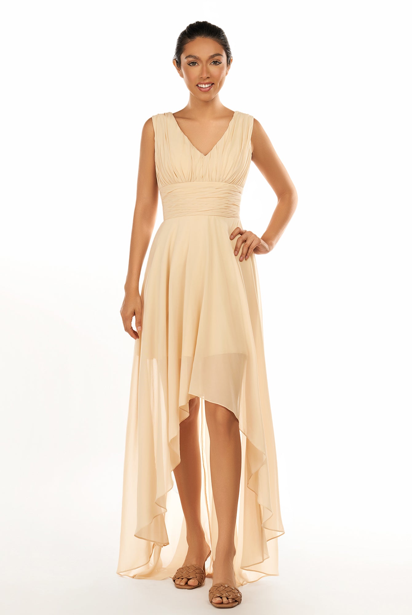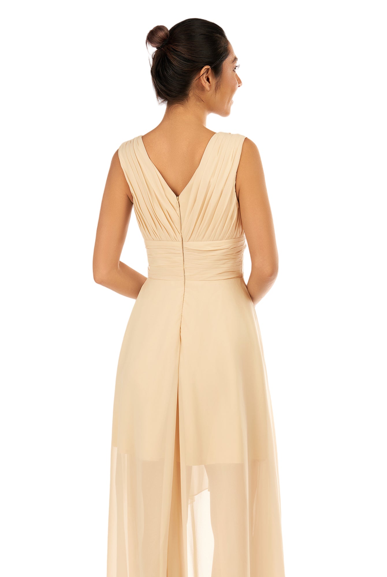 Xeni | Gold - V Neck A-Line Metallic Pleated Short Homecoming Dresses