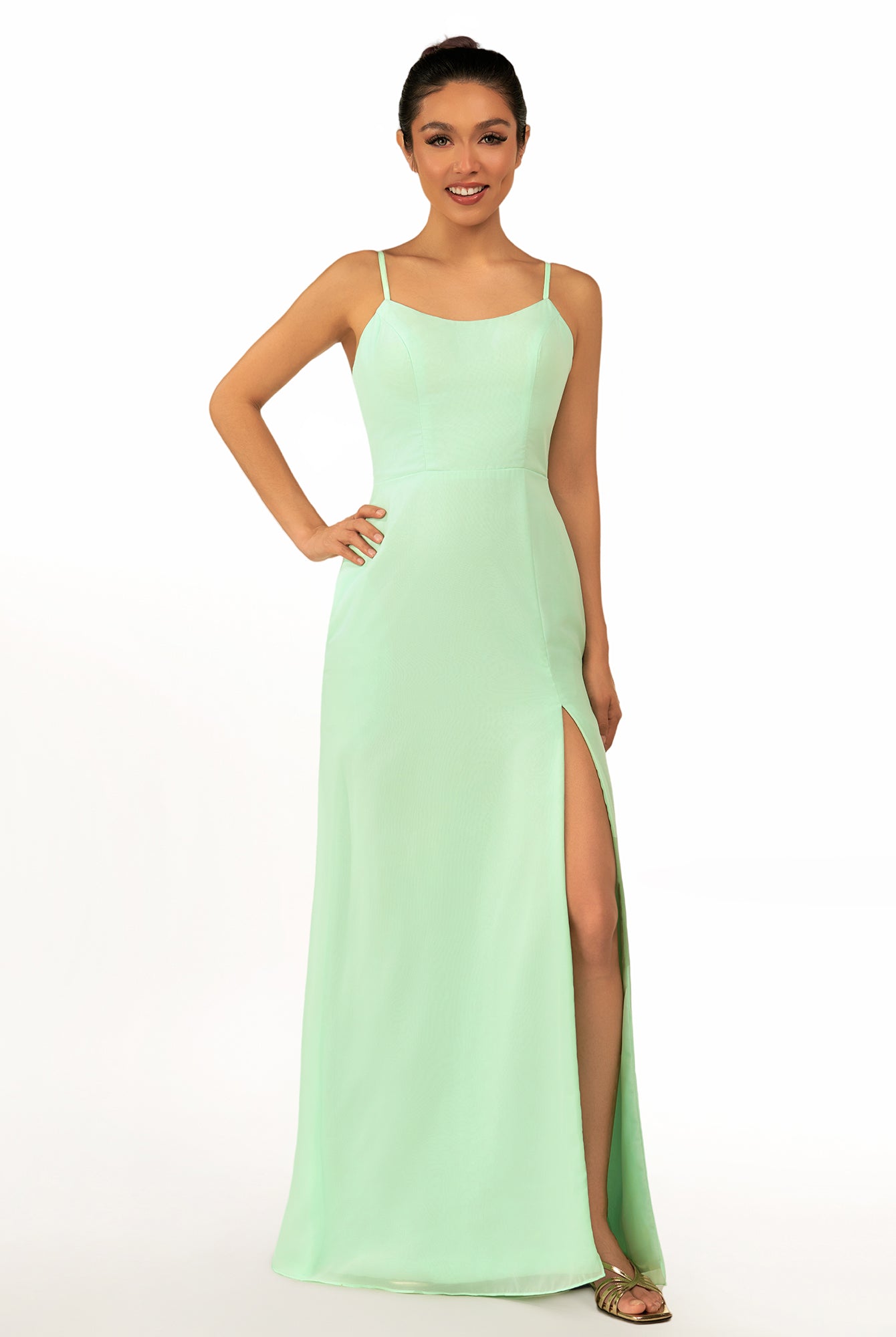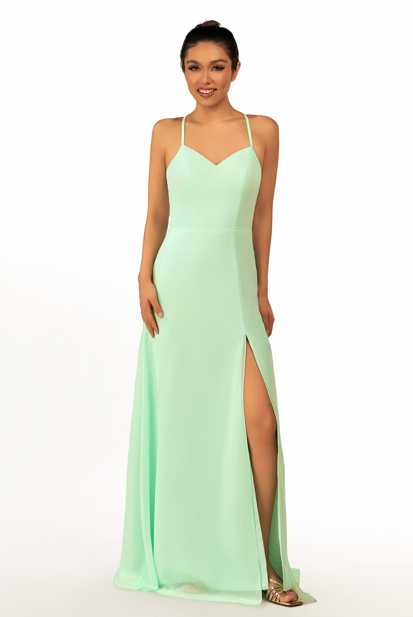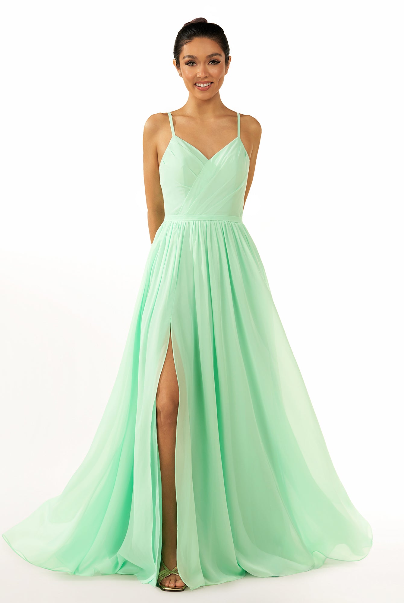 38 reviewsA-line Spaghetti Straps Corset Back Prom Dress With Split
