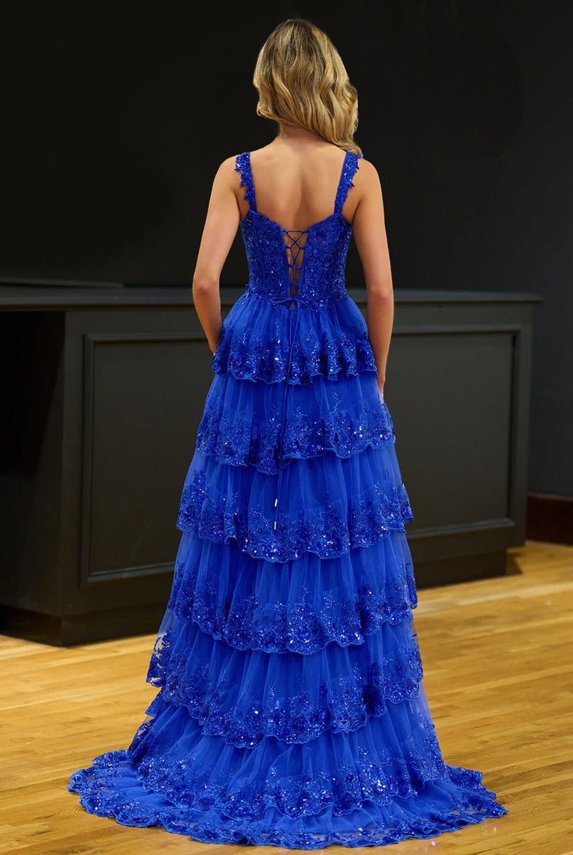 21 reviewsLivia |Sheath One Shoulder Tiered Lace Long Prom Dress