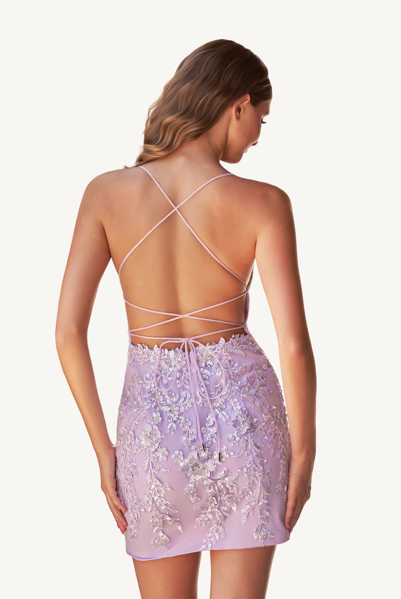 Mava | Navy Blue - V Neck Bodycon Sequins Pleated Short Homecoming Dresses