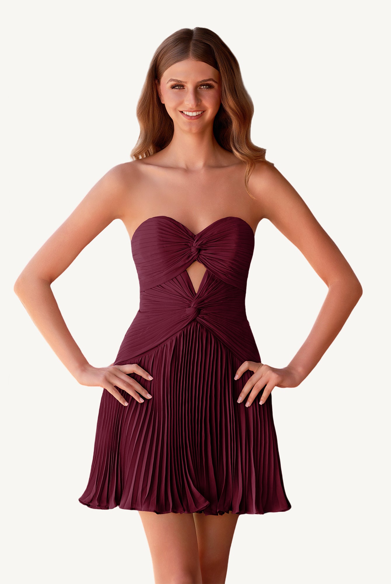 Paolaine | Fuchsia - A-Line Sweetheart Cutout Pleated Chiffon Homecoming Dresses