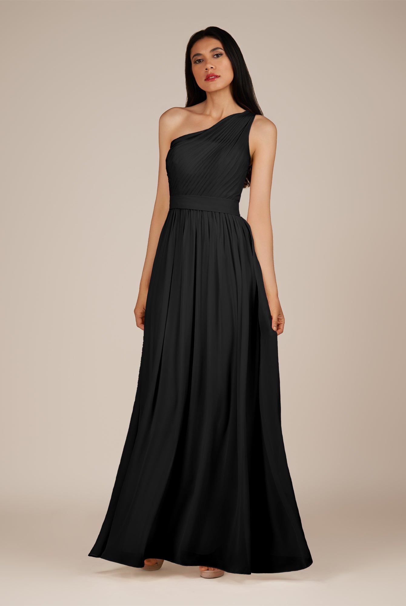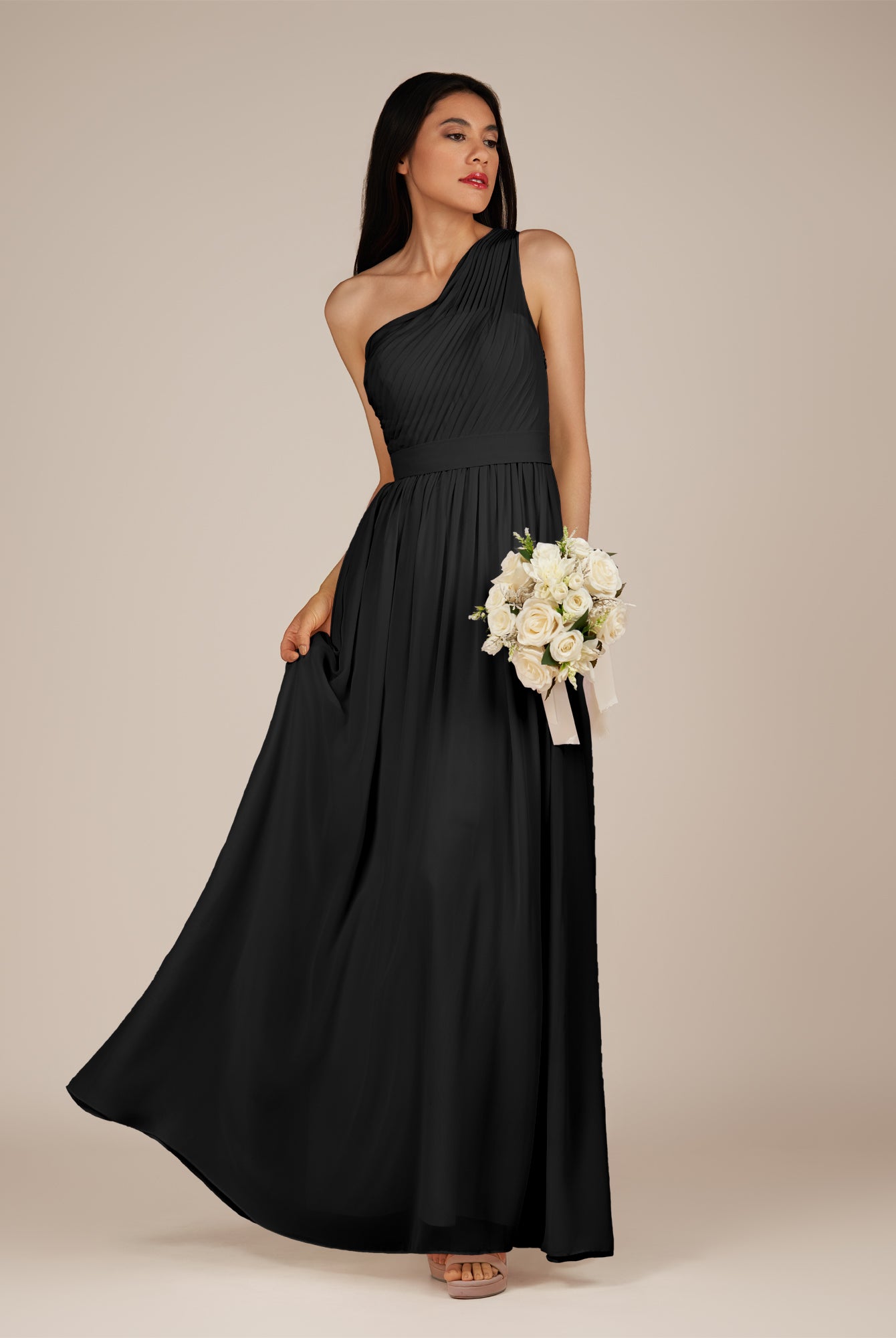25 reviewsA Line One Shoulder Black Long Prom Dress with Appliques