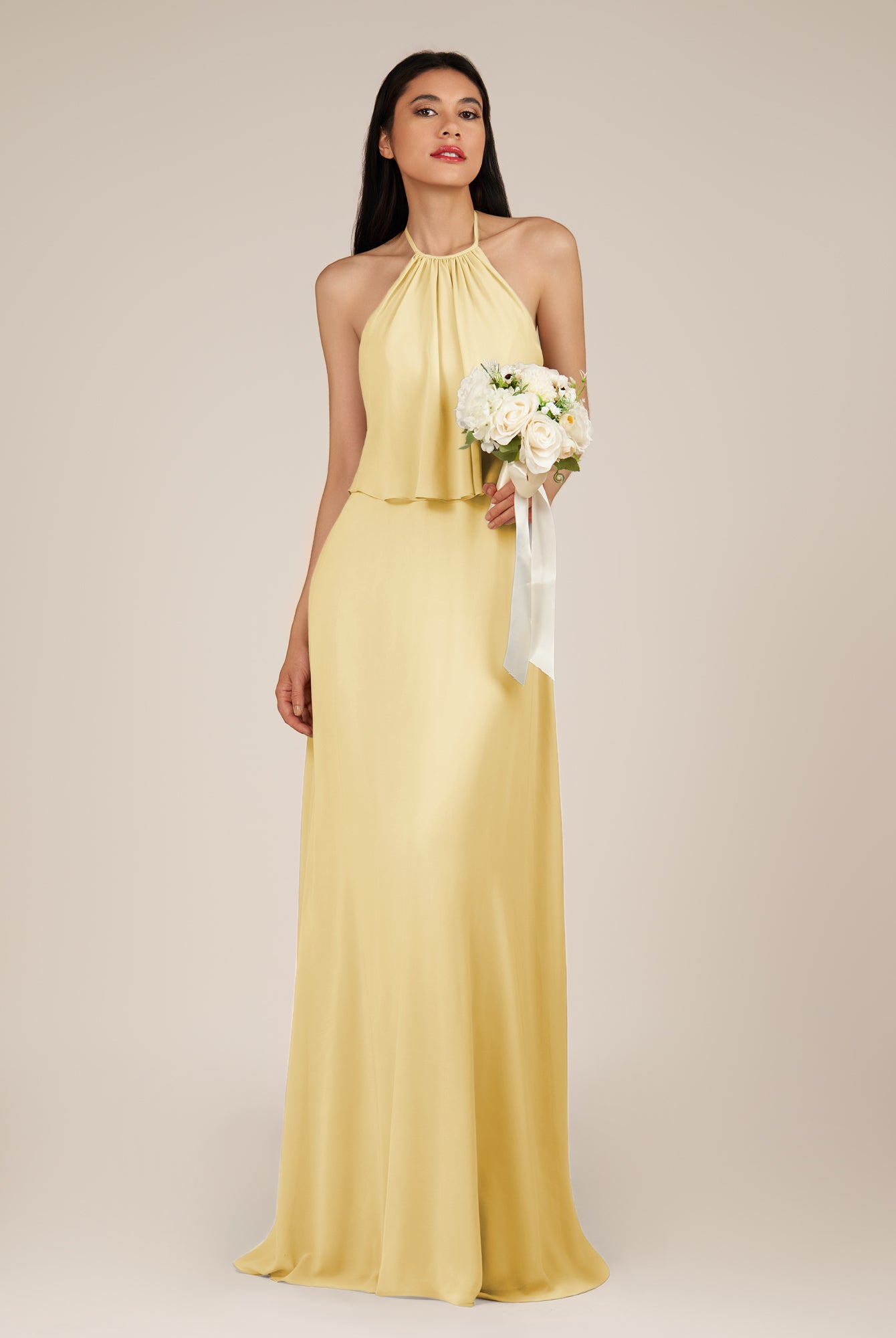 Rhoswen | Pastel Yellow - Sheath Chiffon Halter Neck Long Bridesmaid Dress