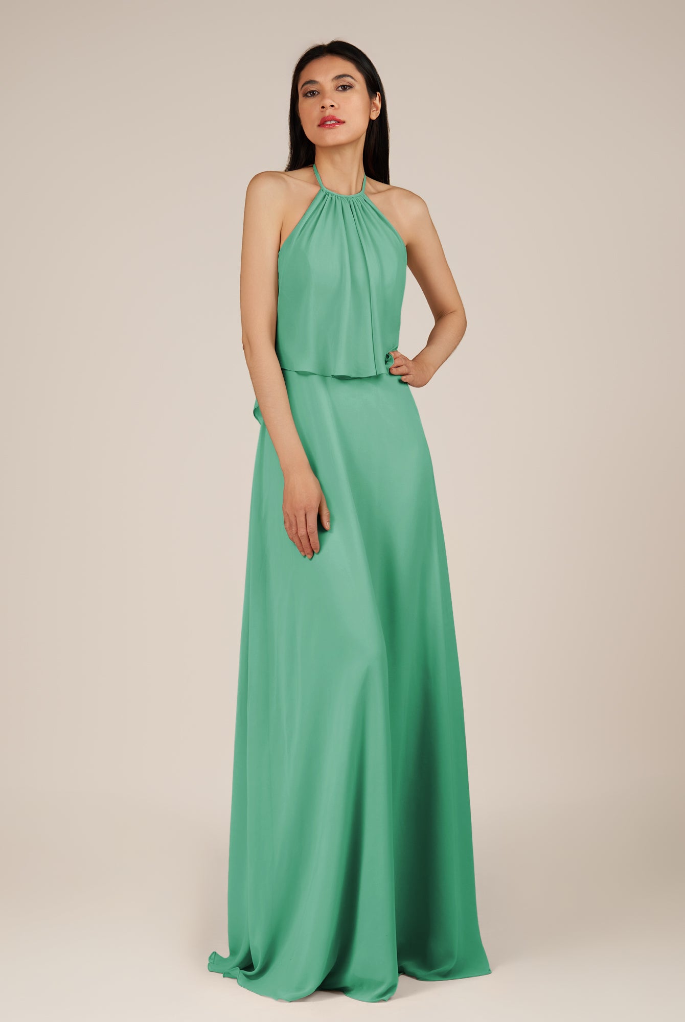 Rhoswen | Sea Glass - Sheath Chiffon Halter Neck Long Bridesmaid Dress