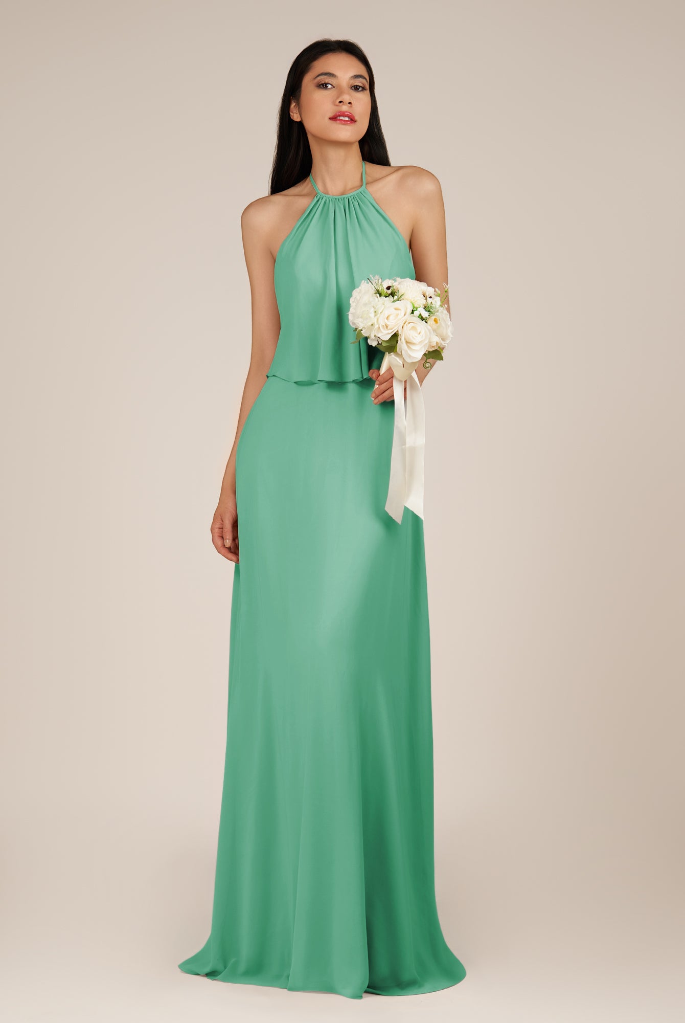 Rhoswen | Willow Green - Sheath Chiffon Halter Neck Long Bridesmaid Dress