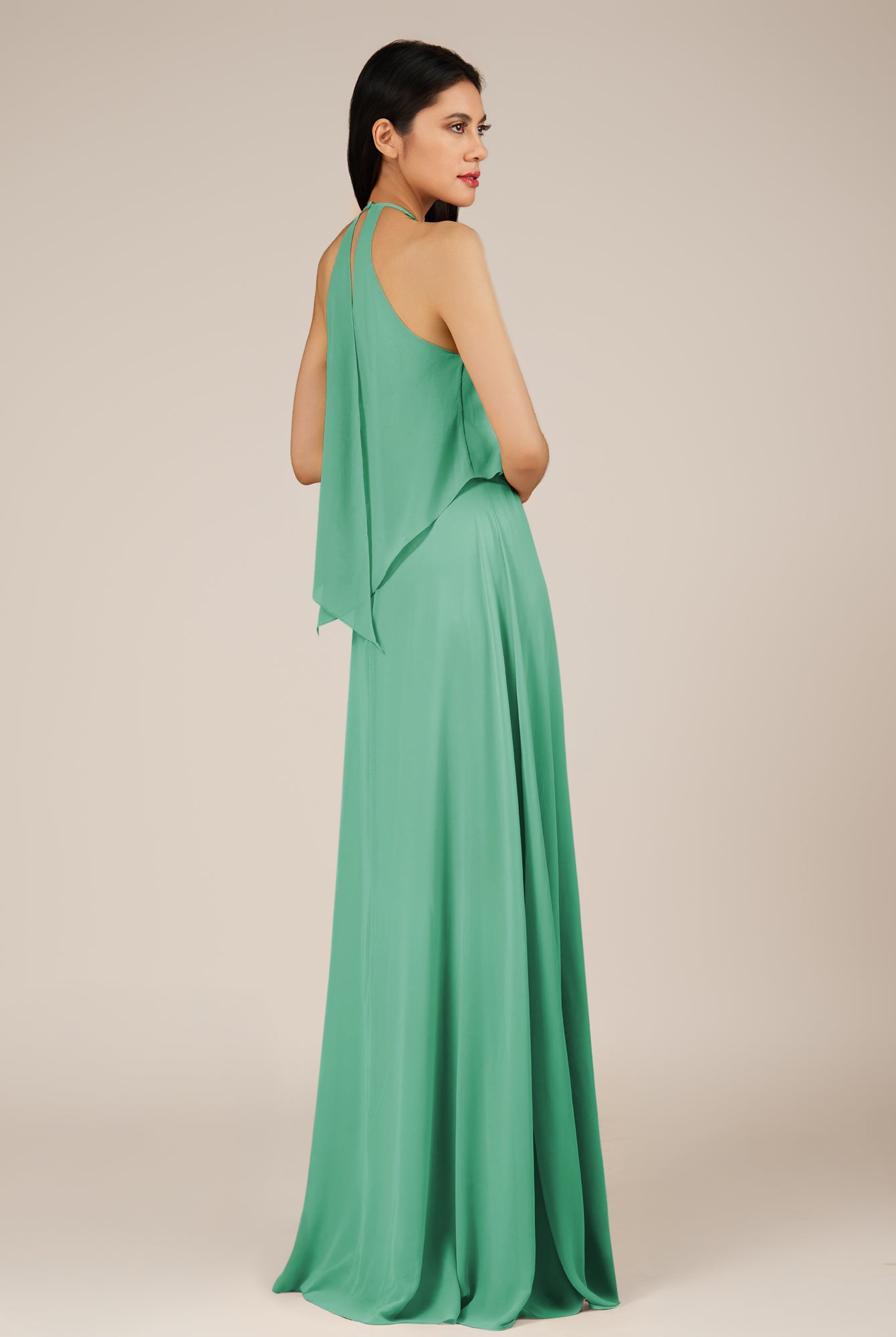 Rhoswen | Turquoise- Sheath Chiffon Halter Neck Long Bridesmaid Dress