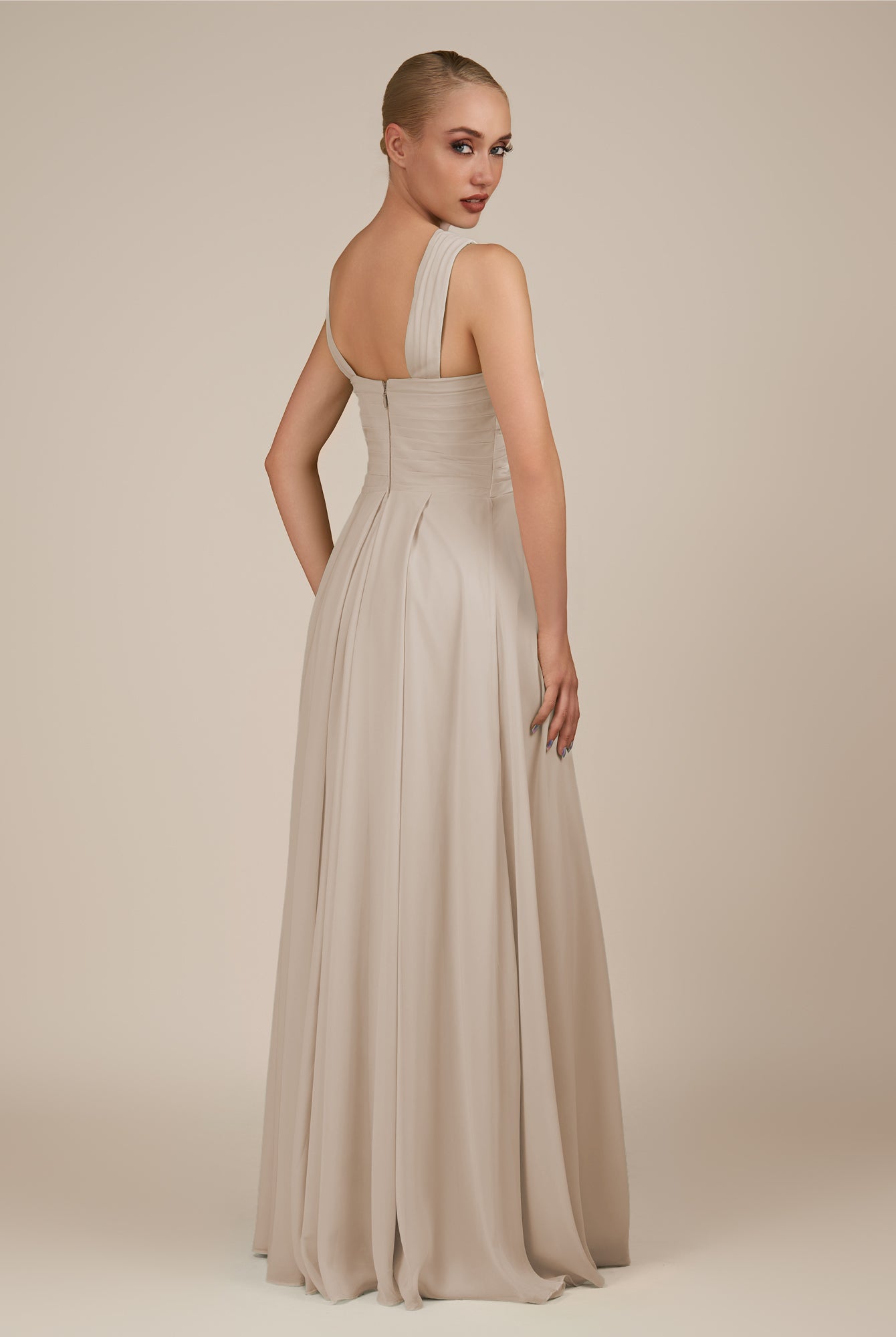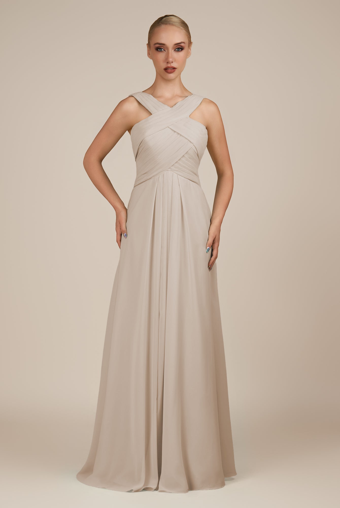 Sharlie | Fig - A Line Chiffon Halter Neck Long Bridesmaid Dress with Pleats