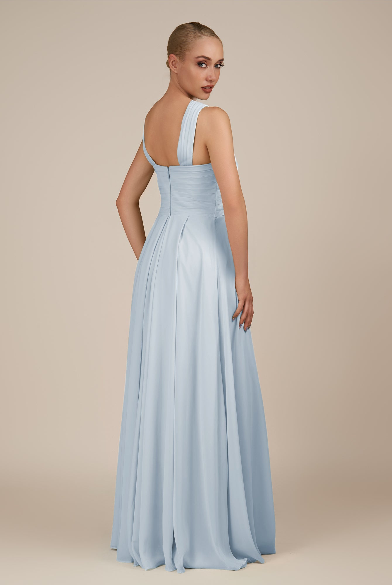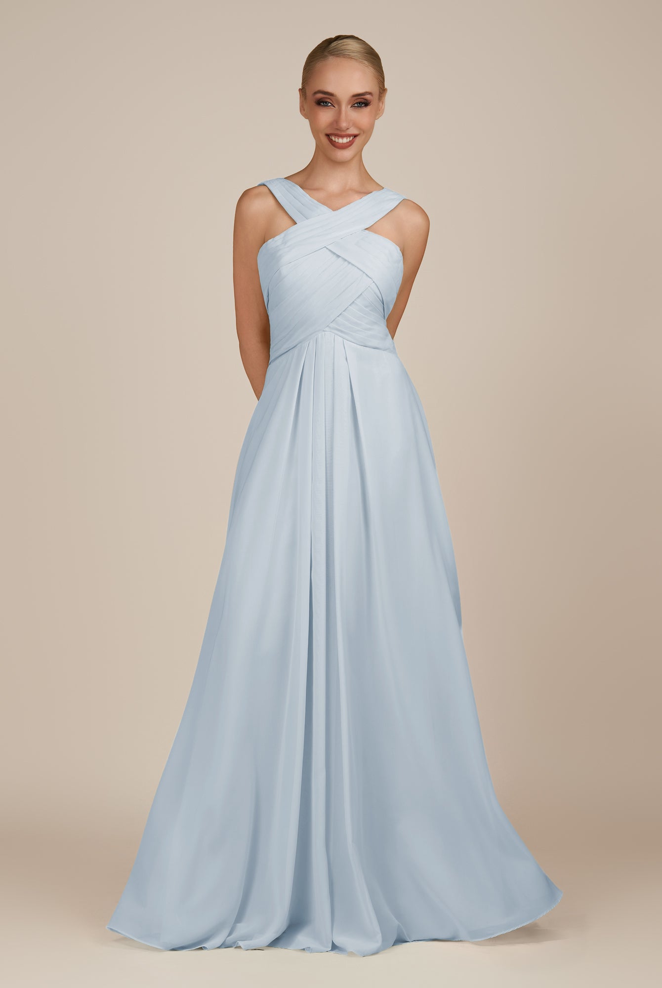 Sharlie | Ice - A Line Chiffon Halter Neck Long Bridesmaid Dress with Pleats