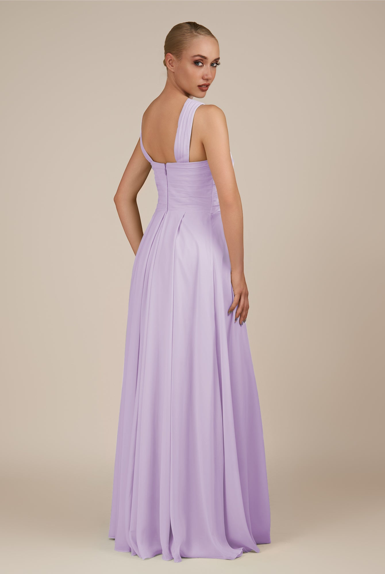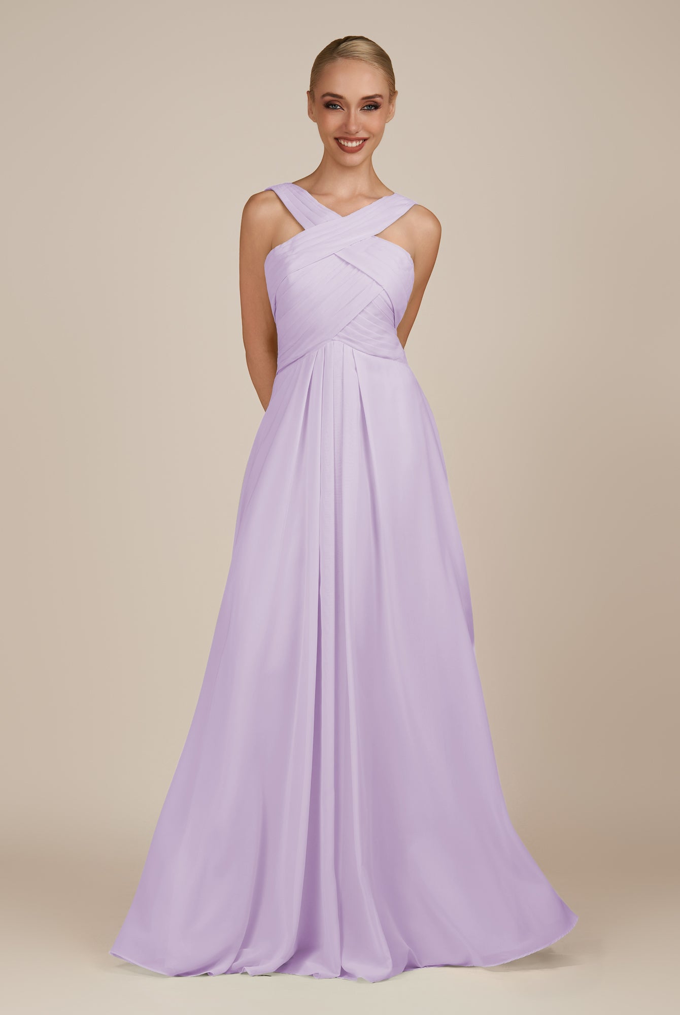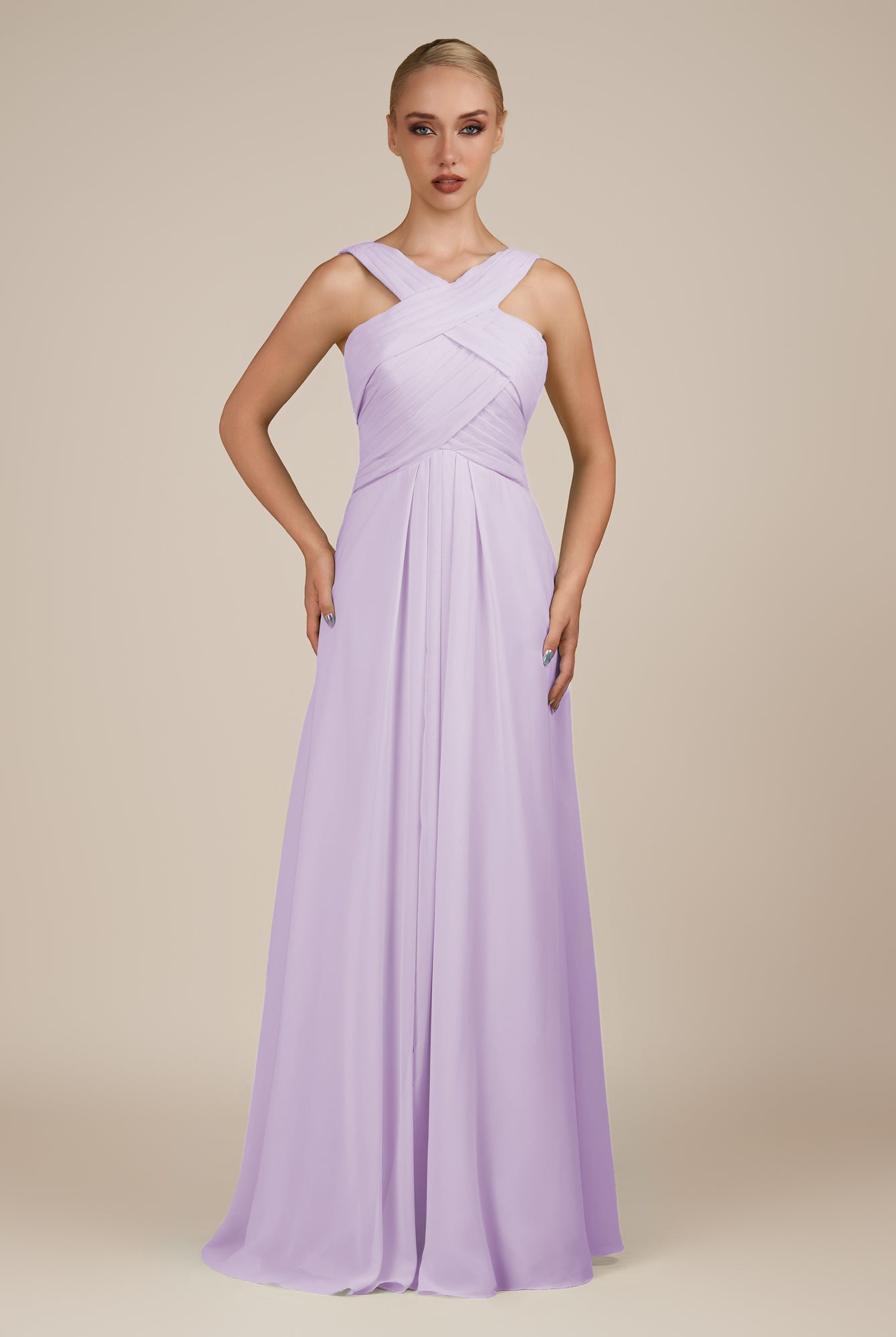 Sharlie | Lavender - A Line Chiffon Halter Neck Long Bridesmaid Dress with Pleats