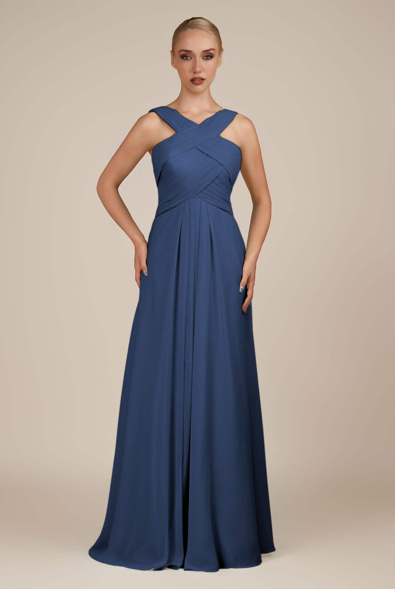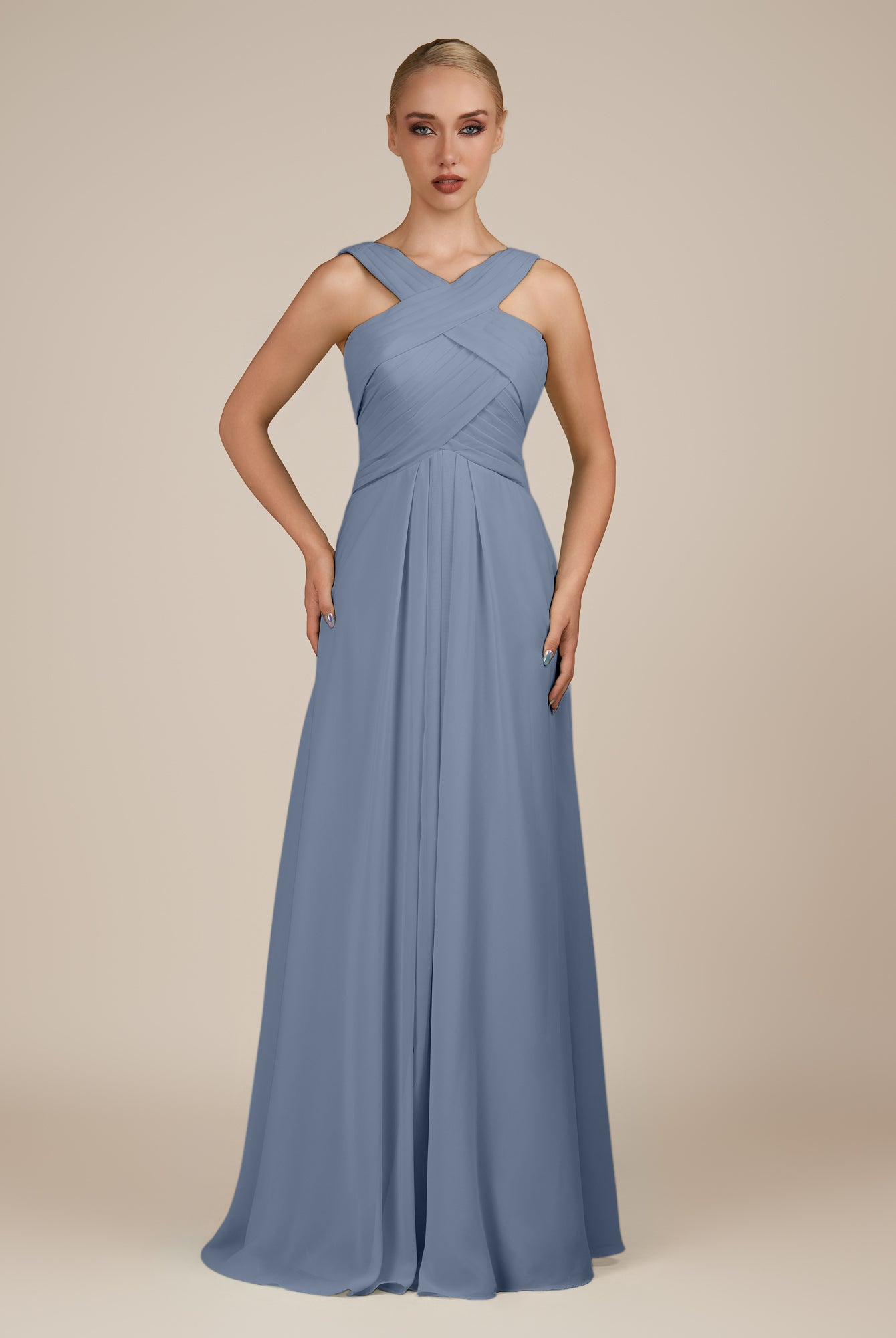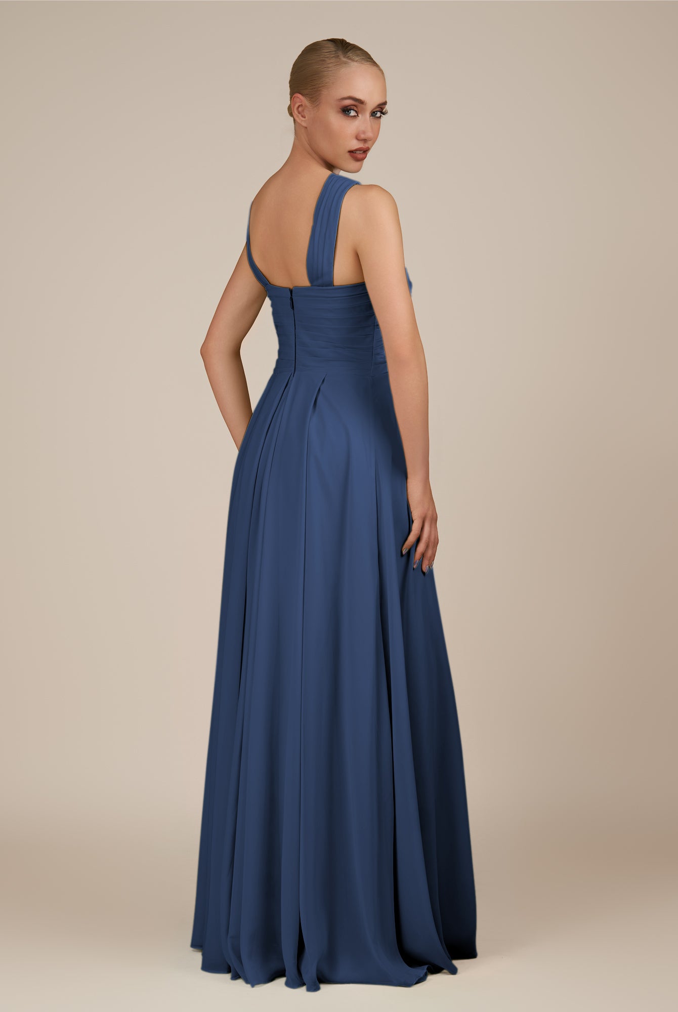 Sharlie | Neptune - A Line Chiffon Halter Neck Long Bridesmaid Dress with Pleats
