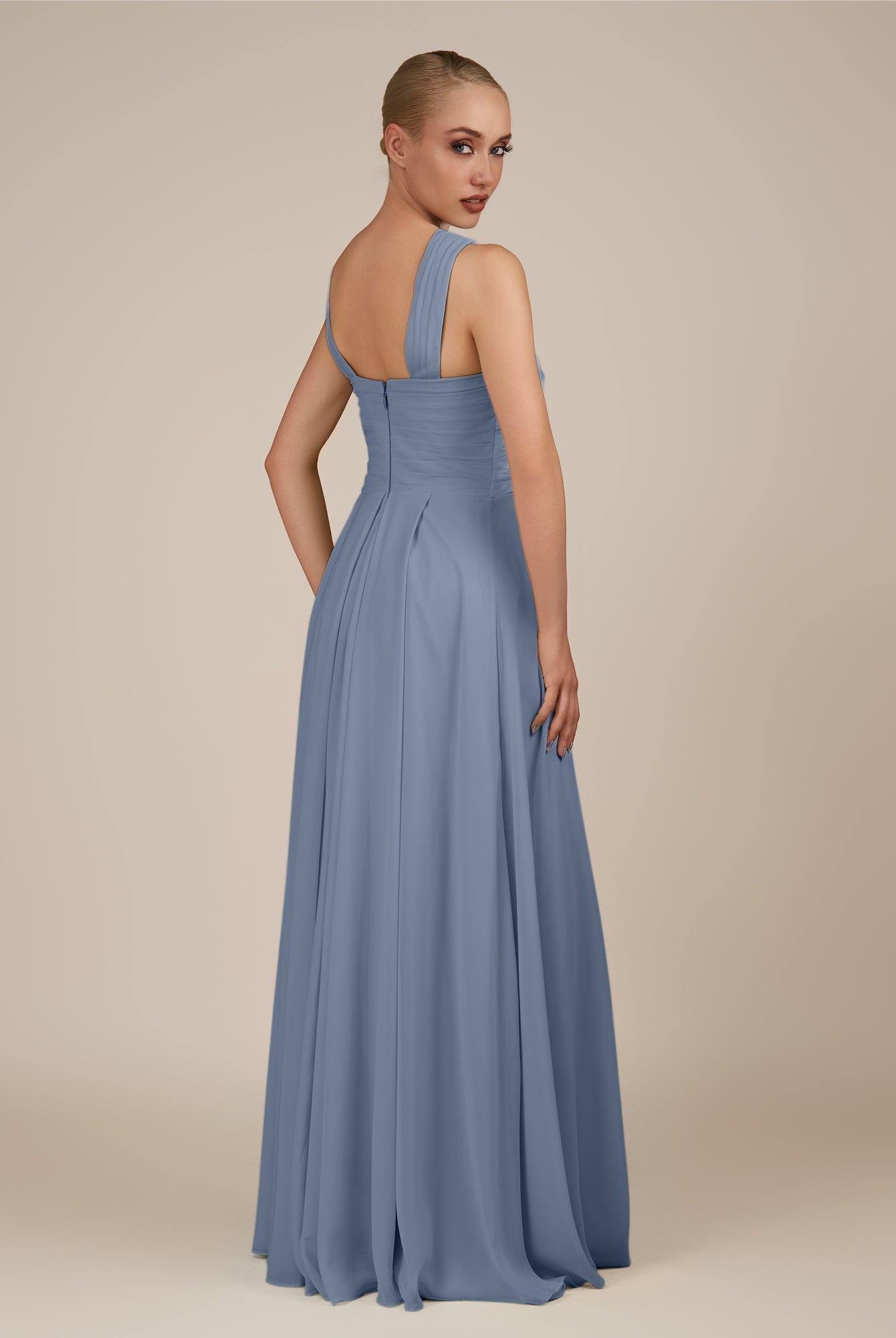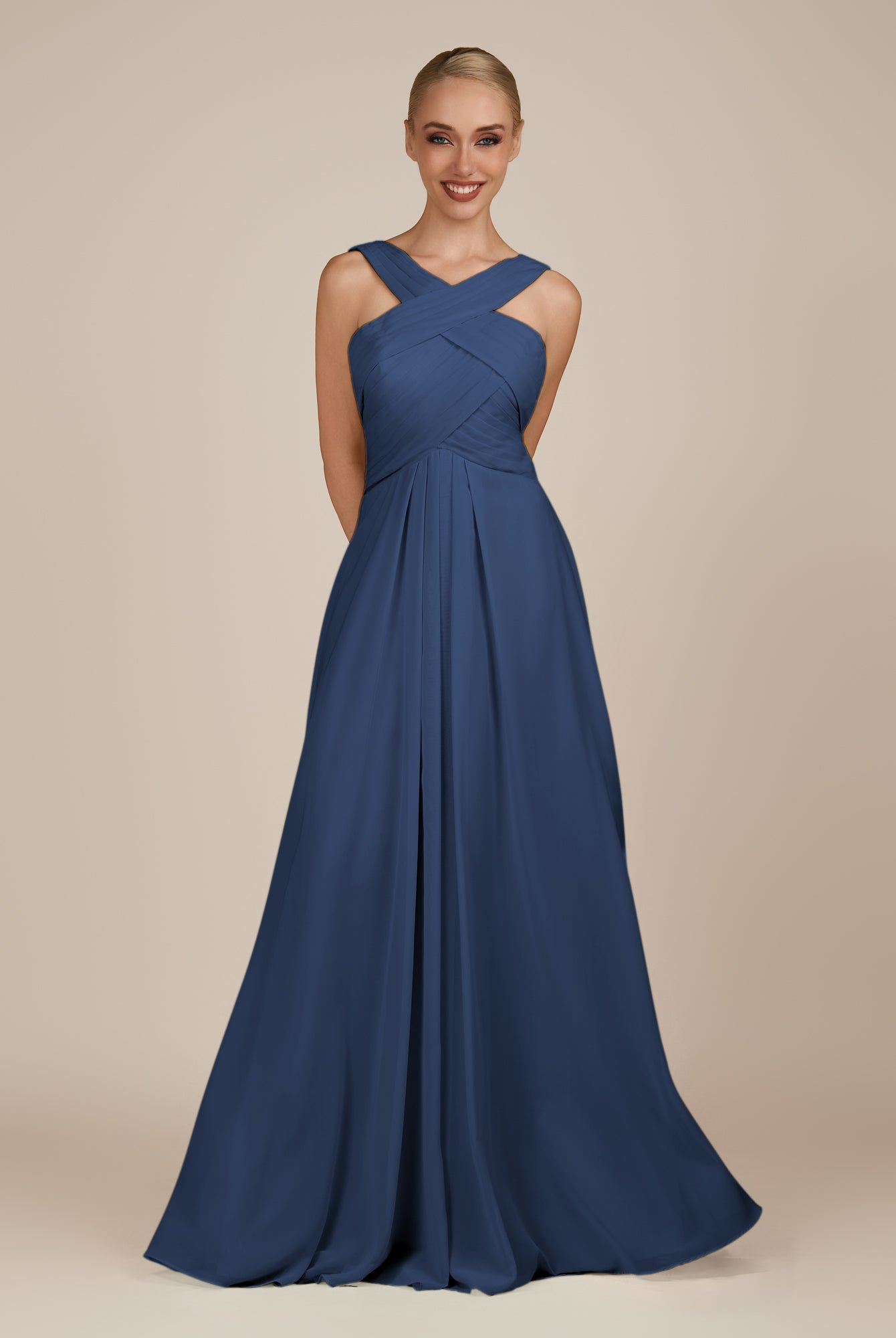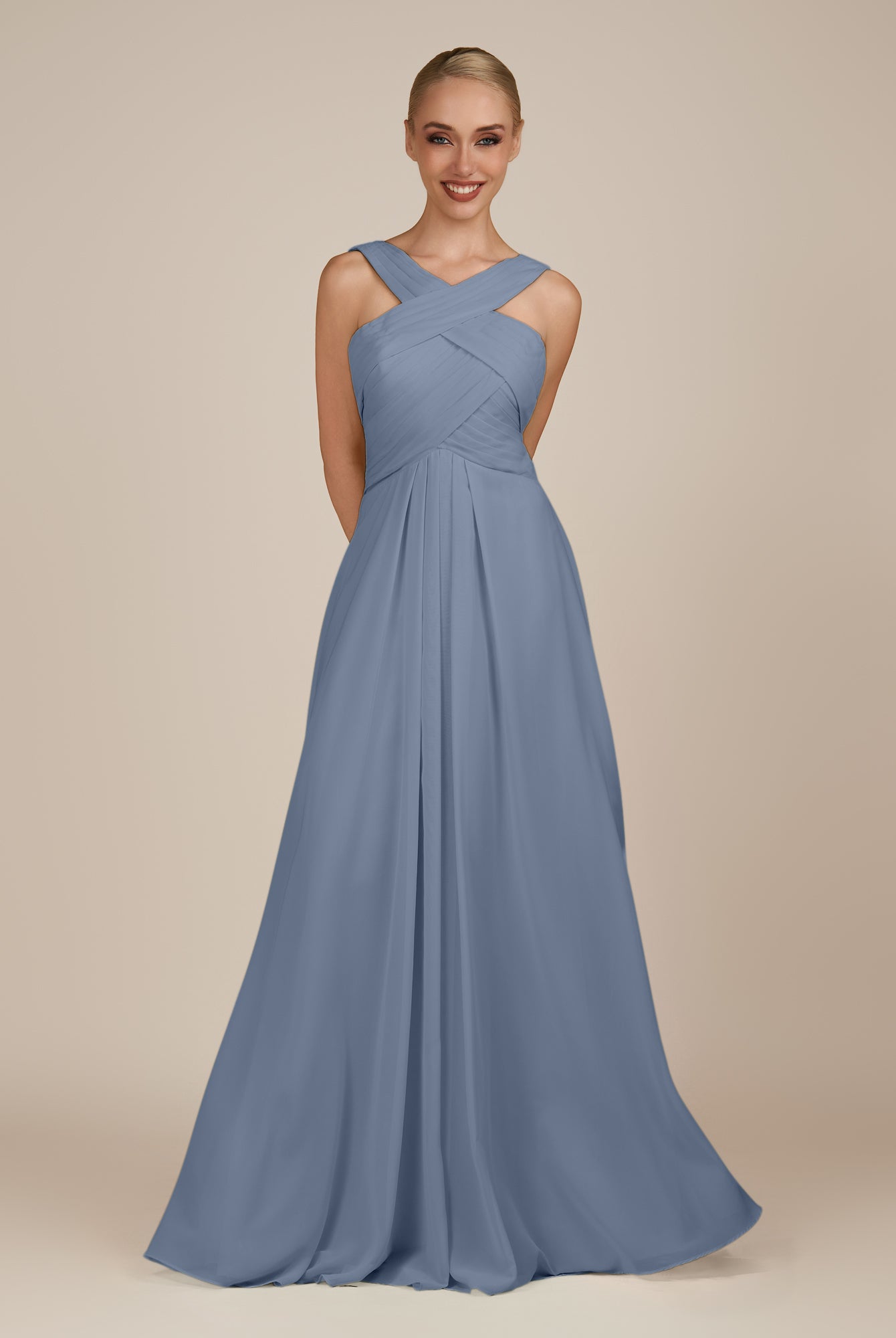 Sharlie | Neptune - A Line Chiffon Halter Neck Long Bridesmaid Dress with Pleats