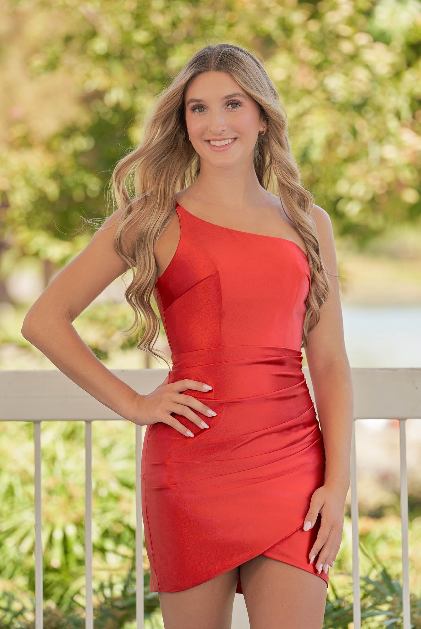 3 reviewsSheath One Shoulder Satin Tight Homecoming Dress