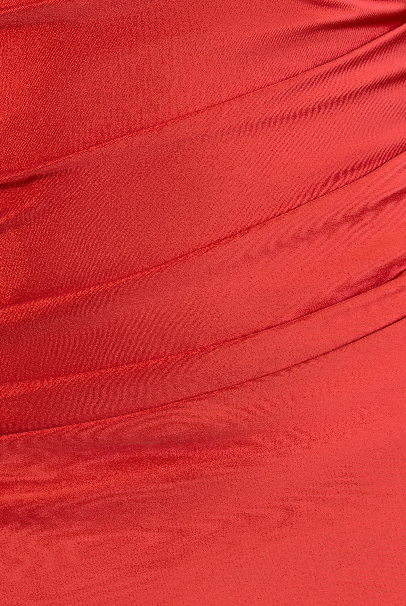 3 reviewsSharlie | Ruby Red - A Line Chiffon Halter Neck Long Bridesmaid Dress with Pleats