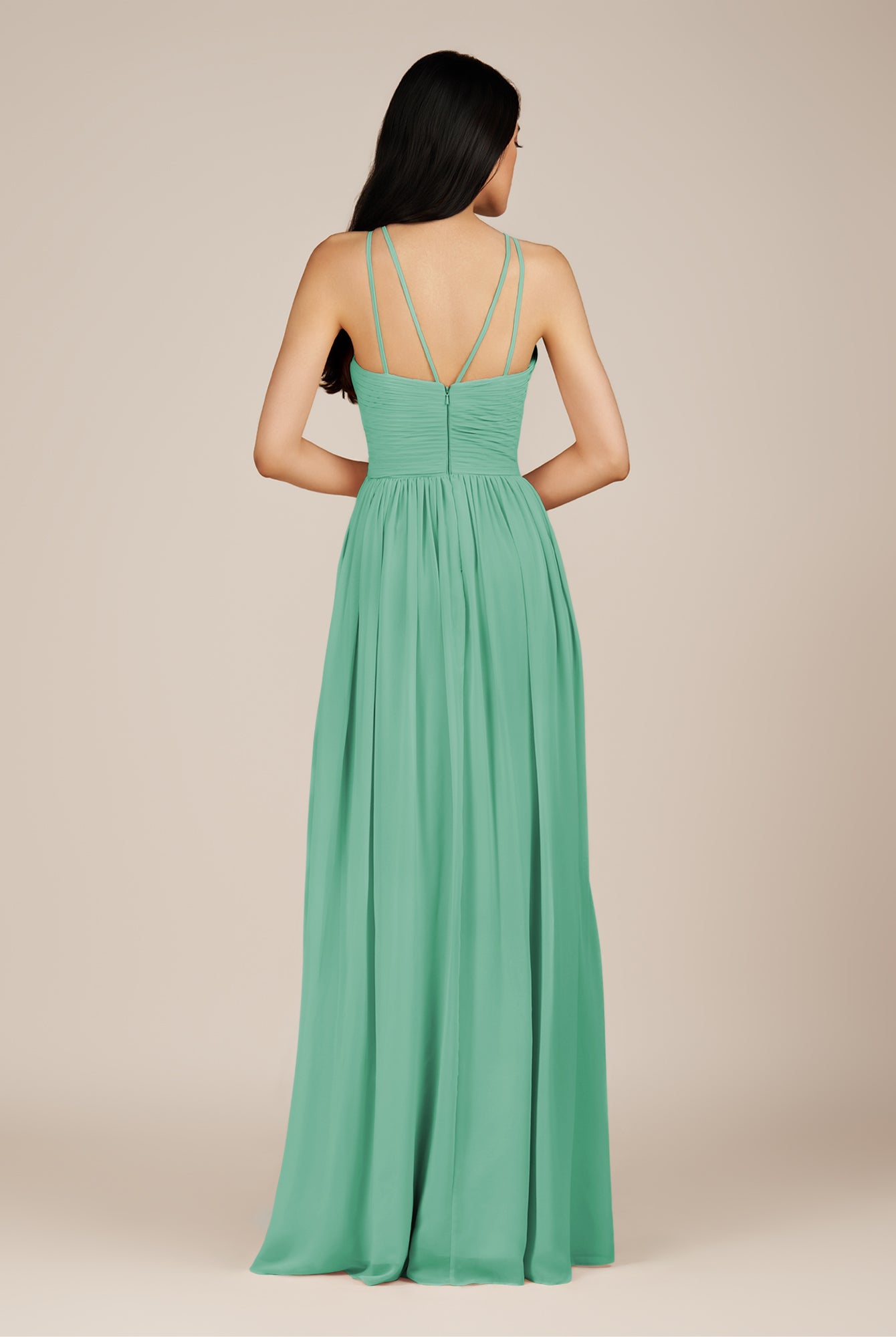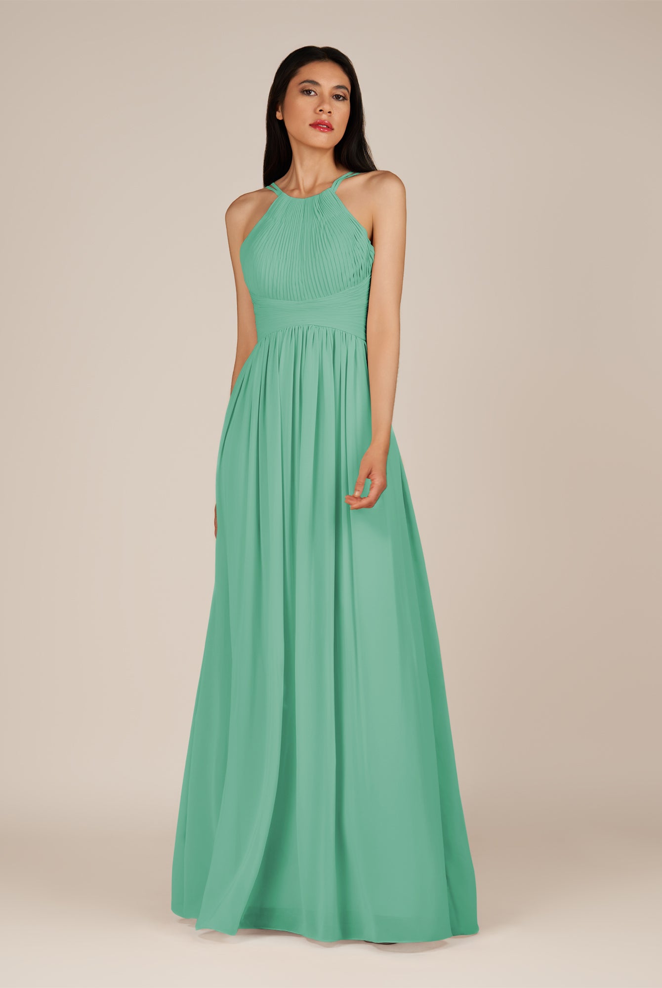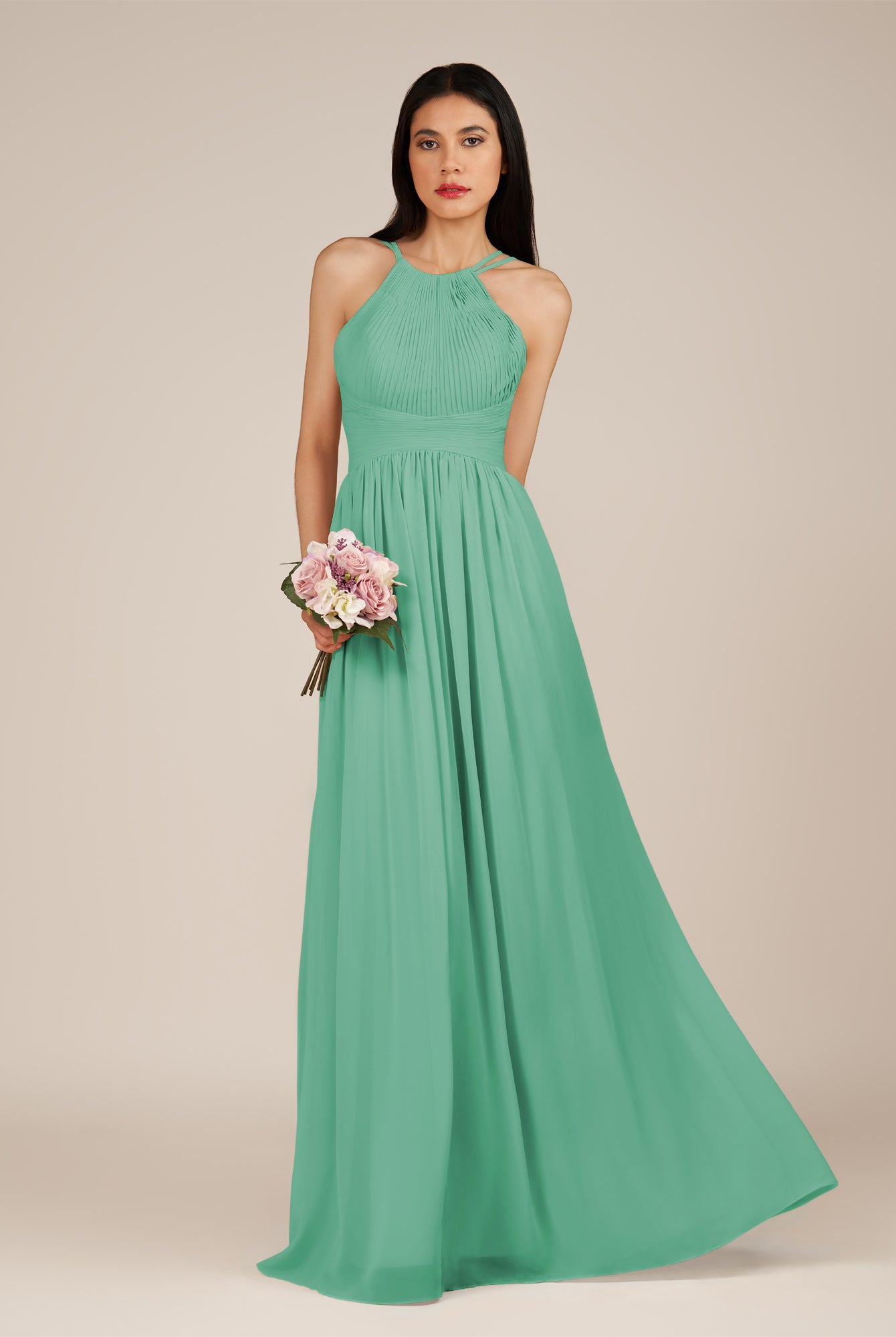 Ursa | Sea Glass - A Line Chiffon Halter Neck Long Bridesmaid Dress with Pleats