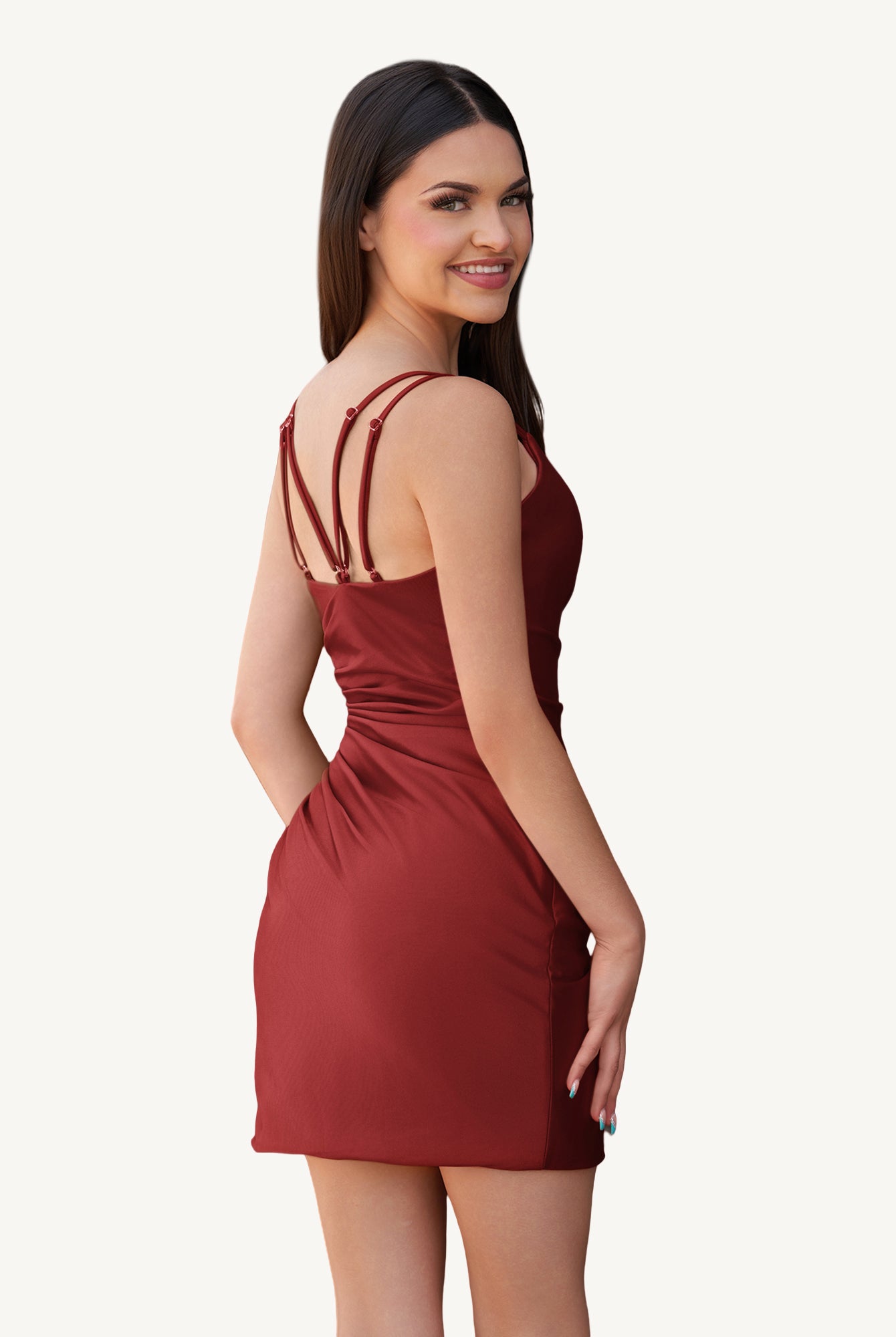 Gia |Sheath Deep V Neck Pleated Satin Homecoming Dress