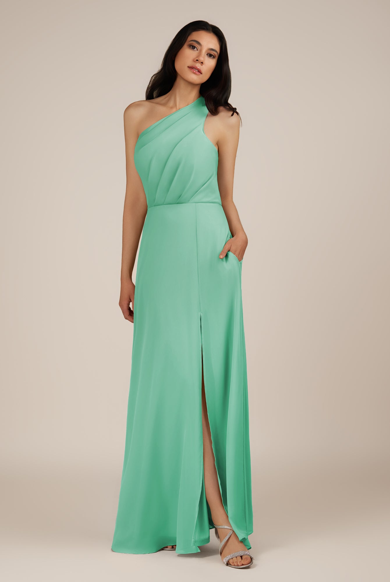 Gaura | Tahiti - A Line Chiffon One Shoulder Pleated Long Bridesmaid Dress with Slit