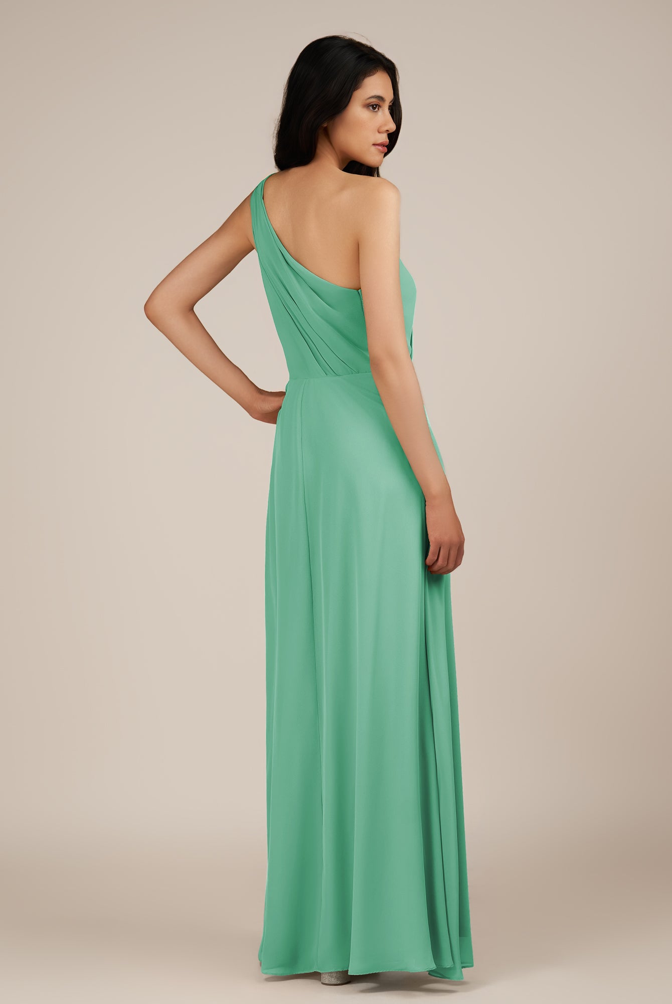 Gaura | Willow Green - A Line Chiffon One Shoulder Pleated Long Bridesmaid Dress with Slit