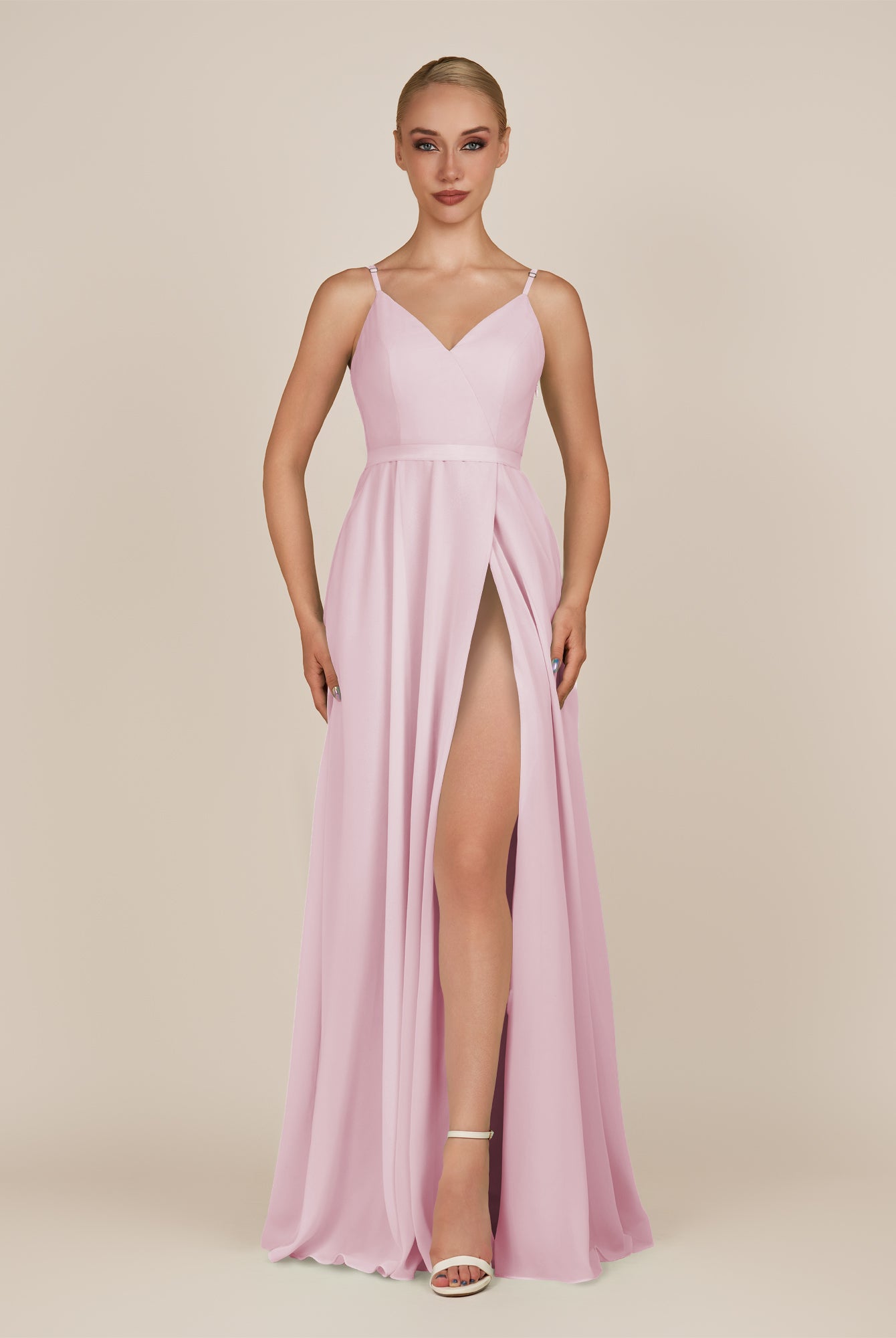 Glenys | A Line V Neck Long Bridesmaid Dress with Slit