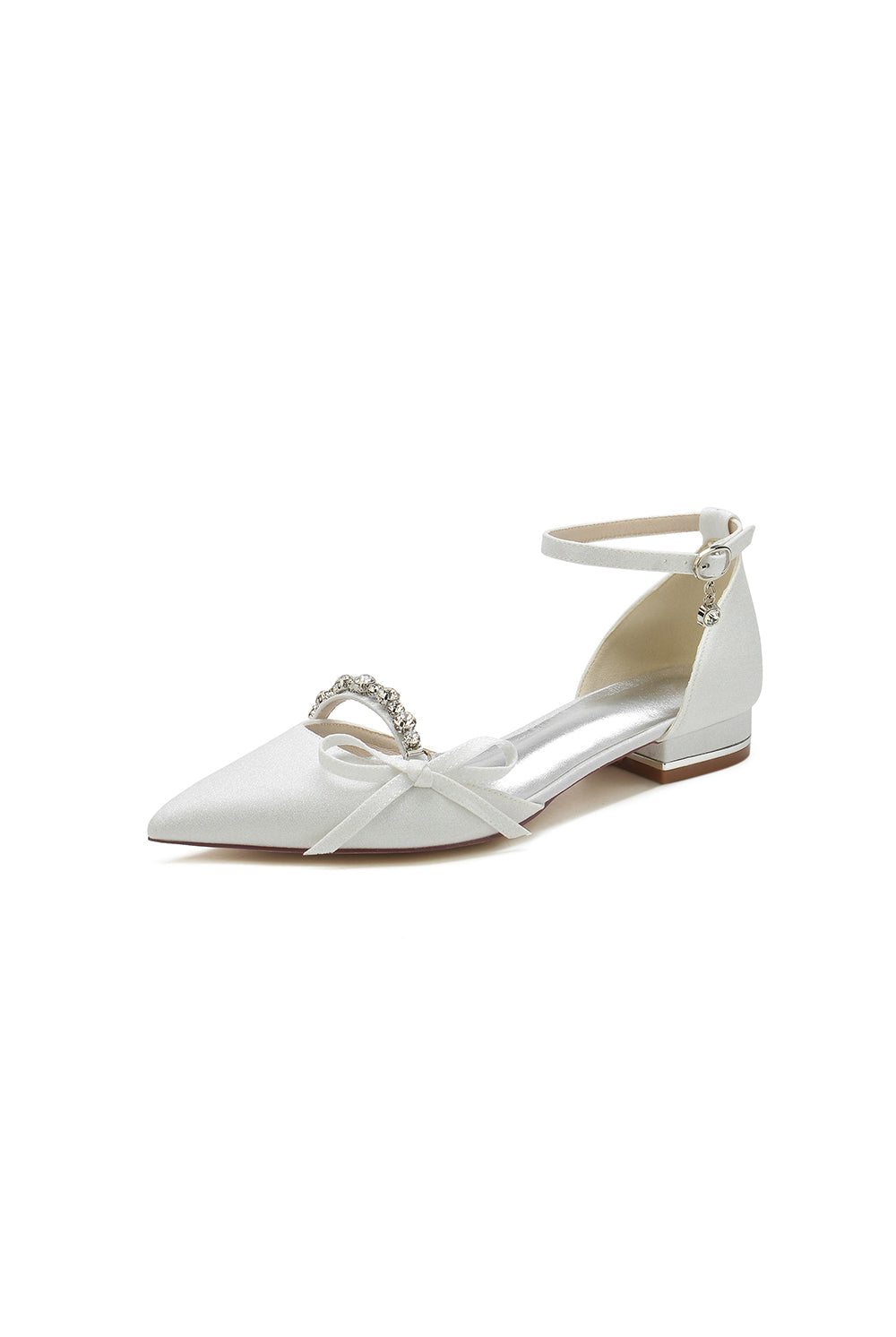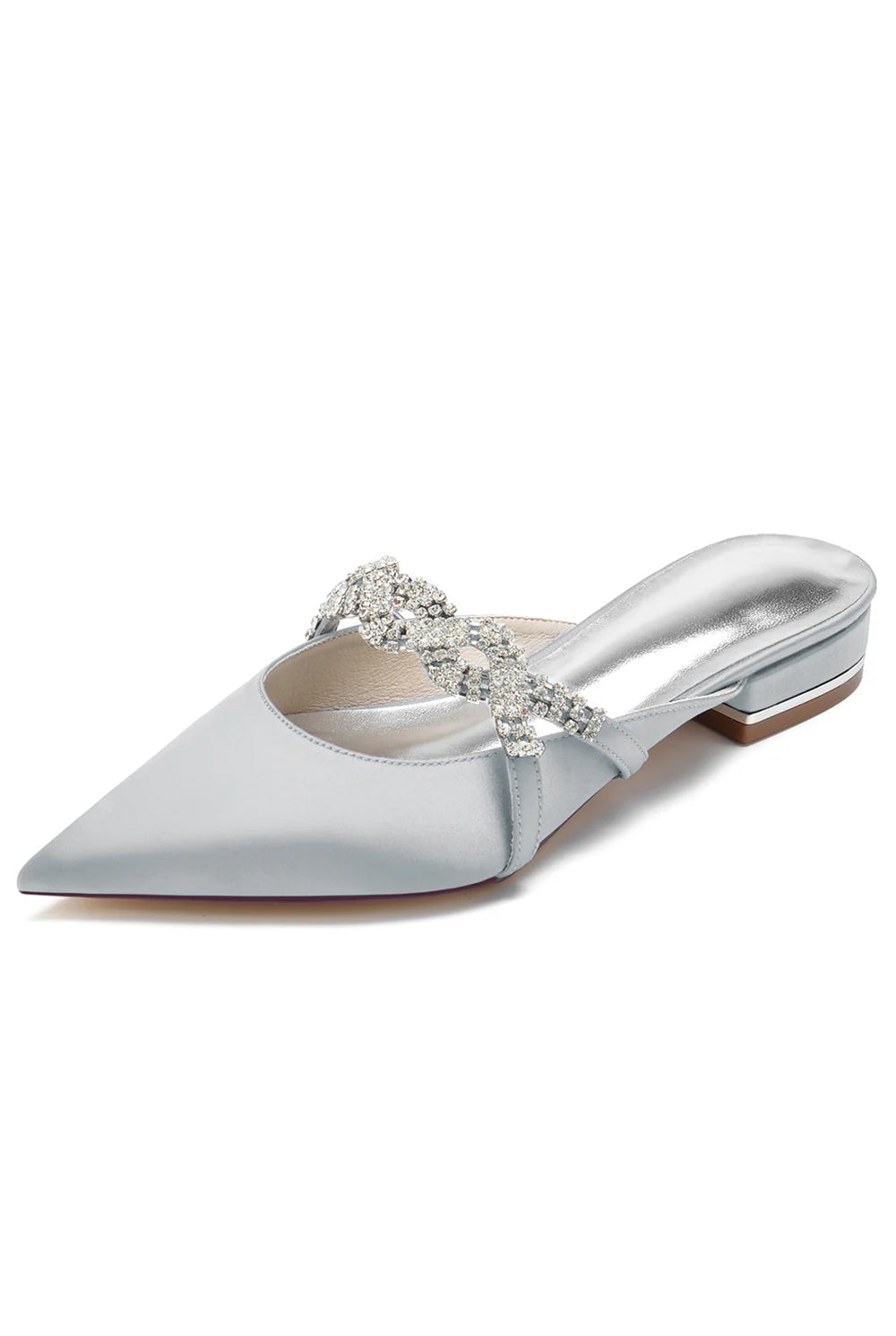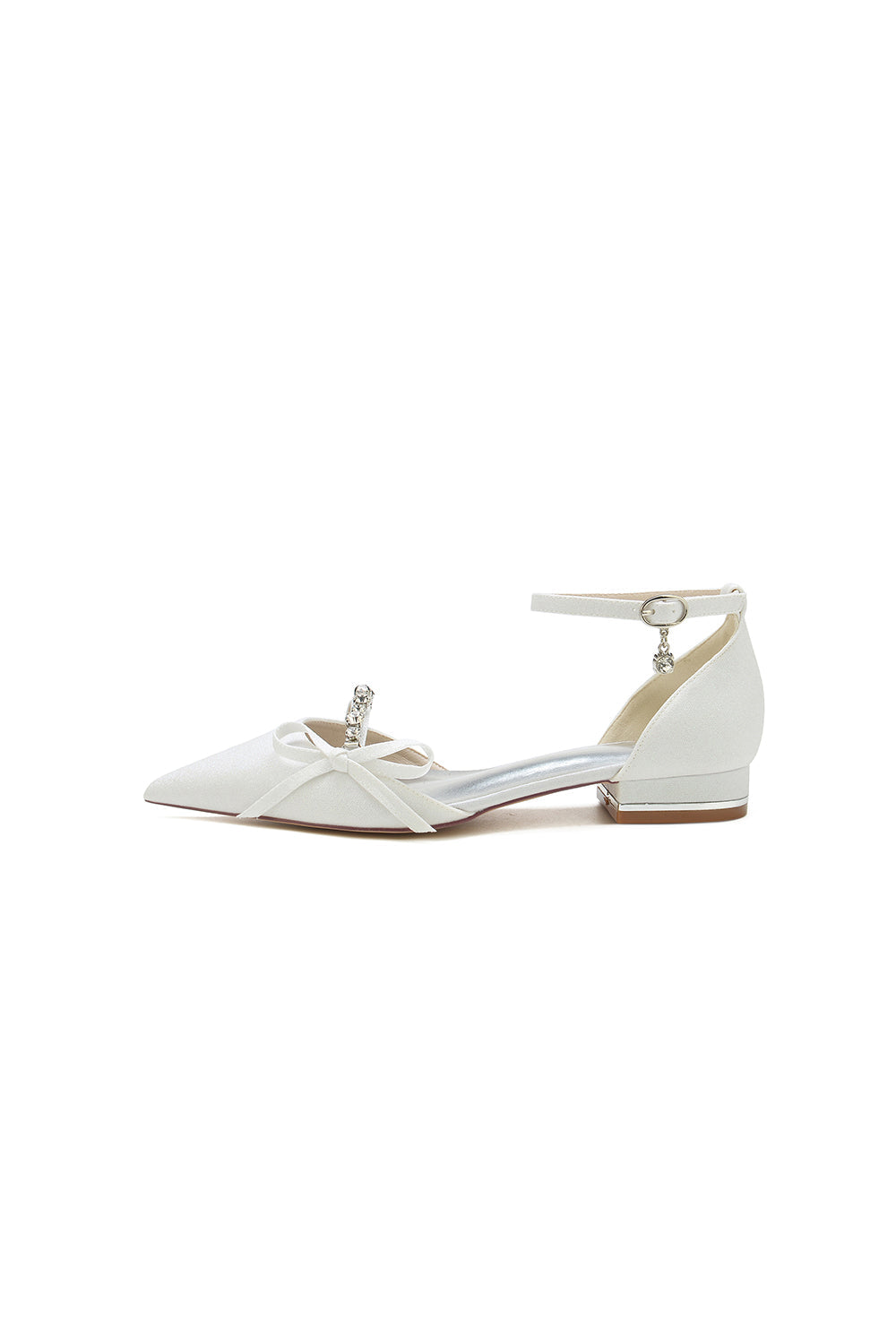 Glitter Pointed Toe Low Heels Wedding Shoes with Bow