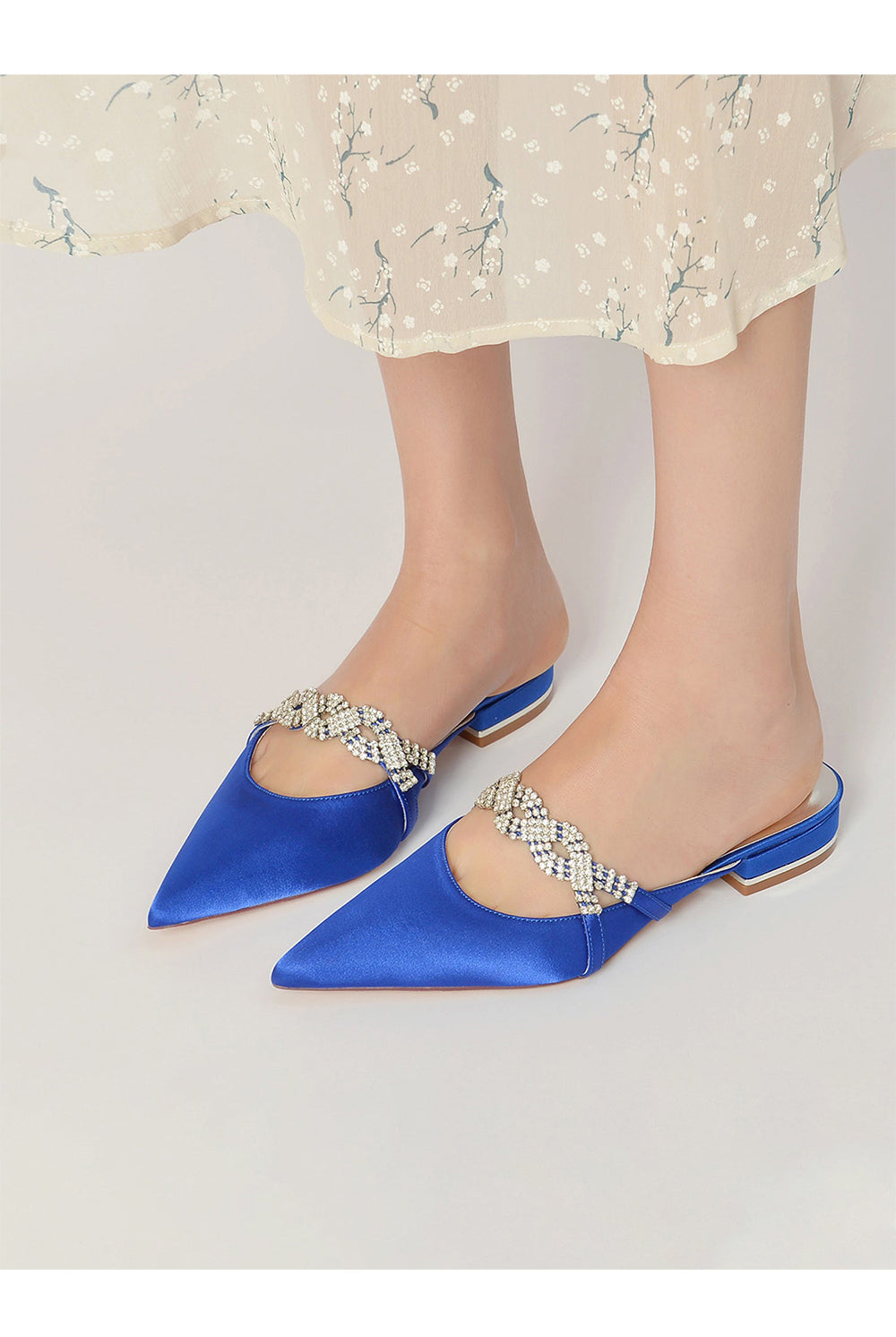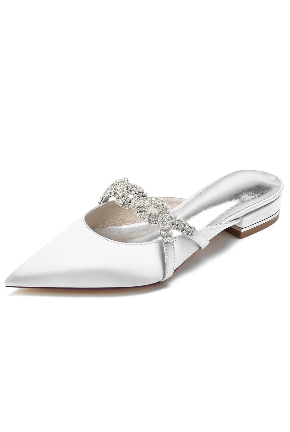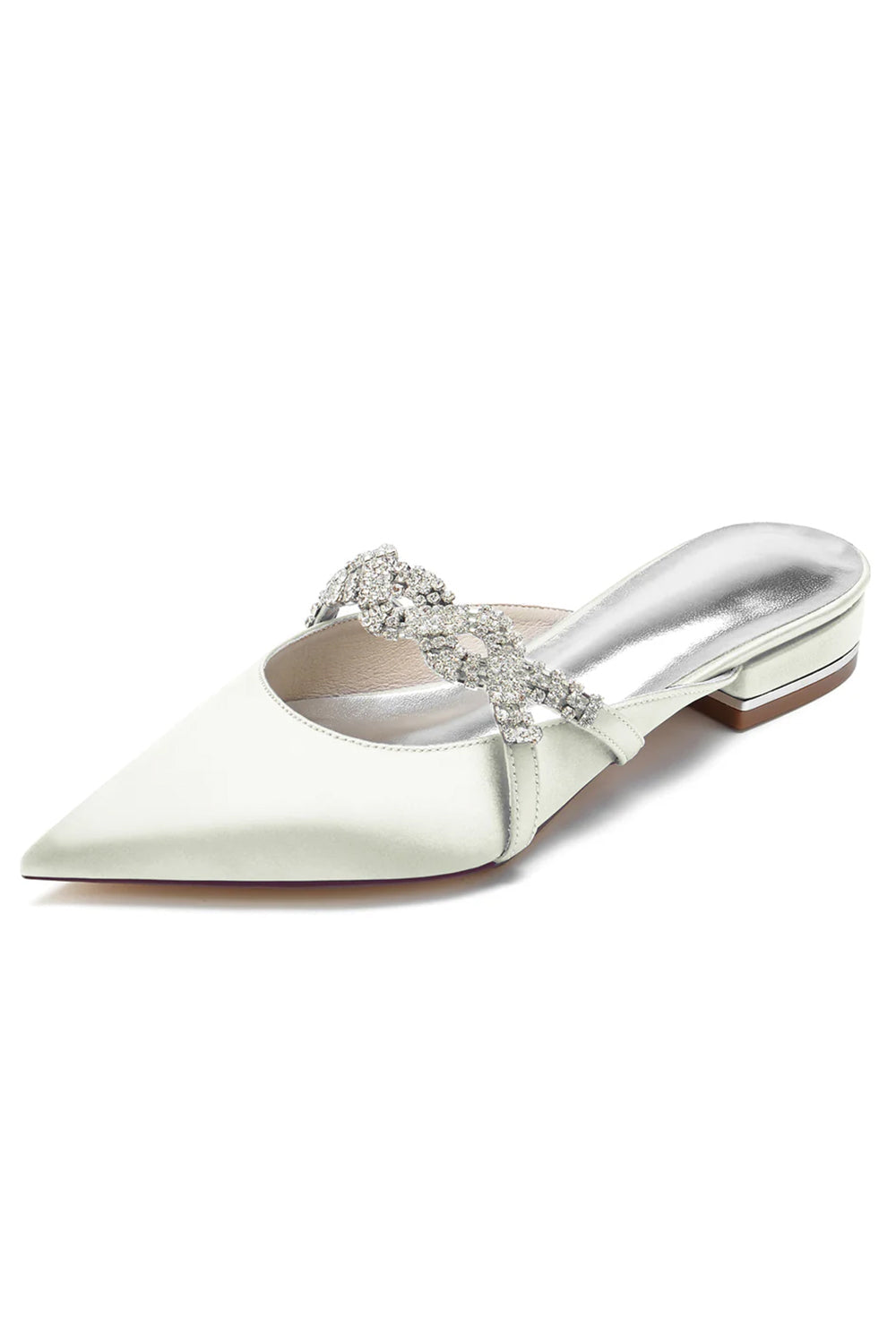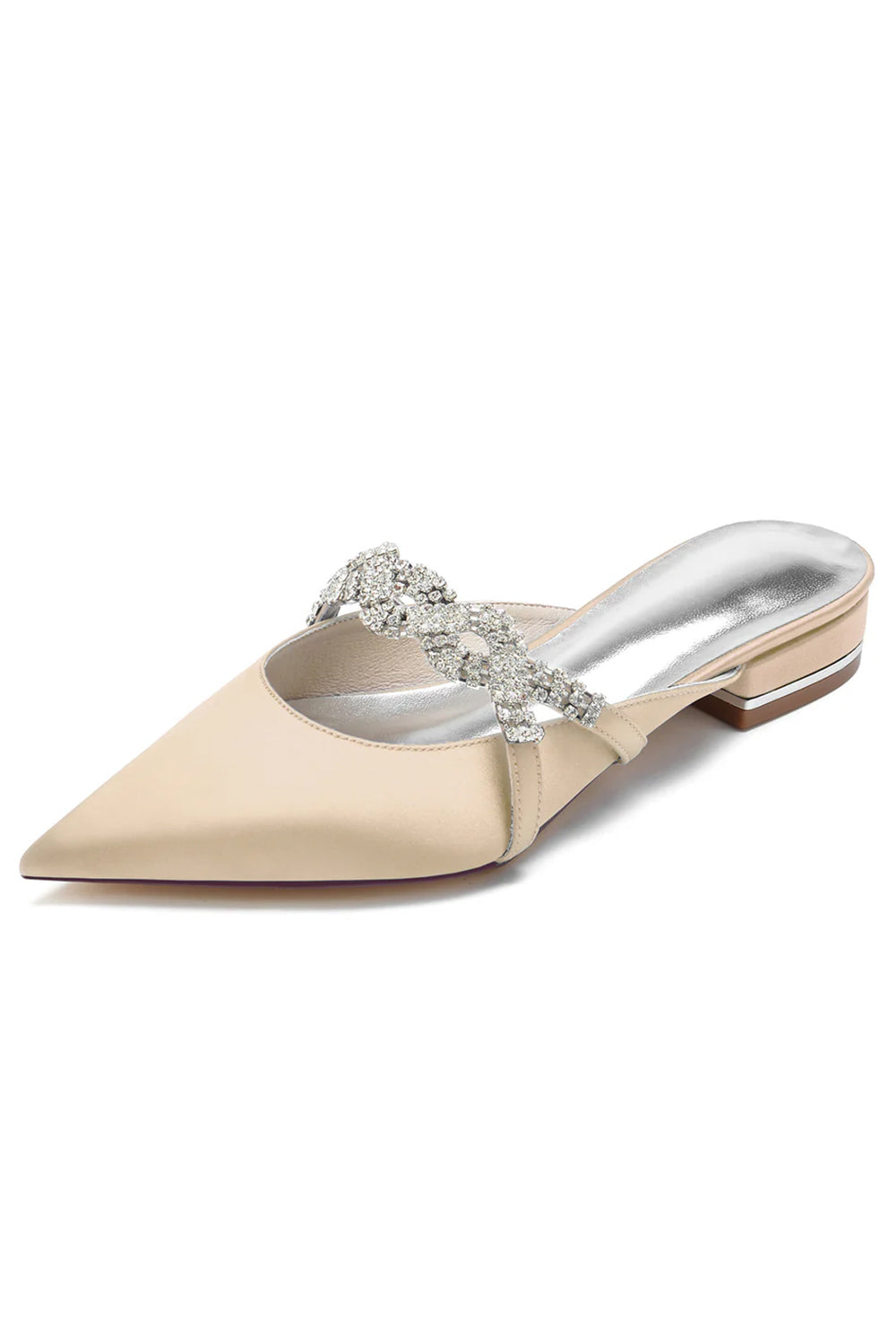 Glitter Pointed Toe Low Heels Wedding Shoes with Bow