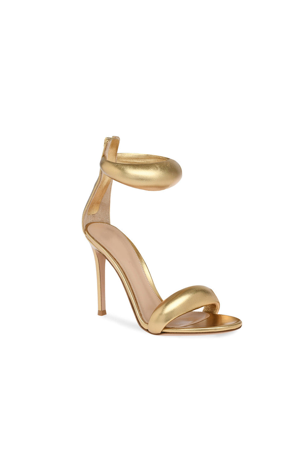 Gold Ankle Strap Leather Stiletto High Heel Sandals