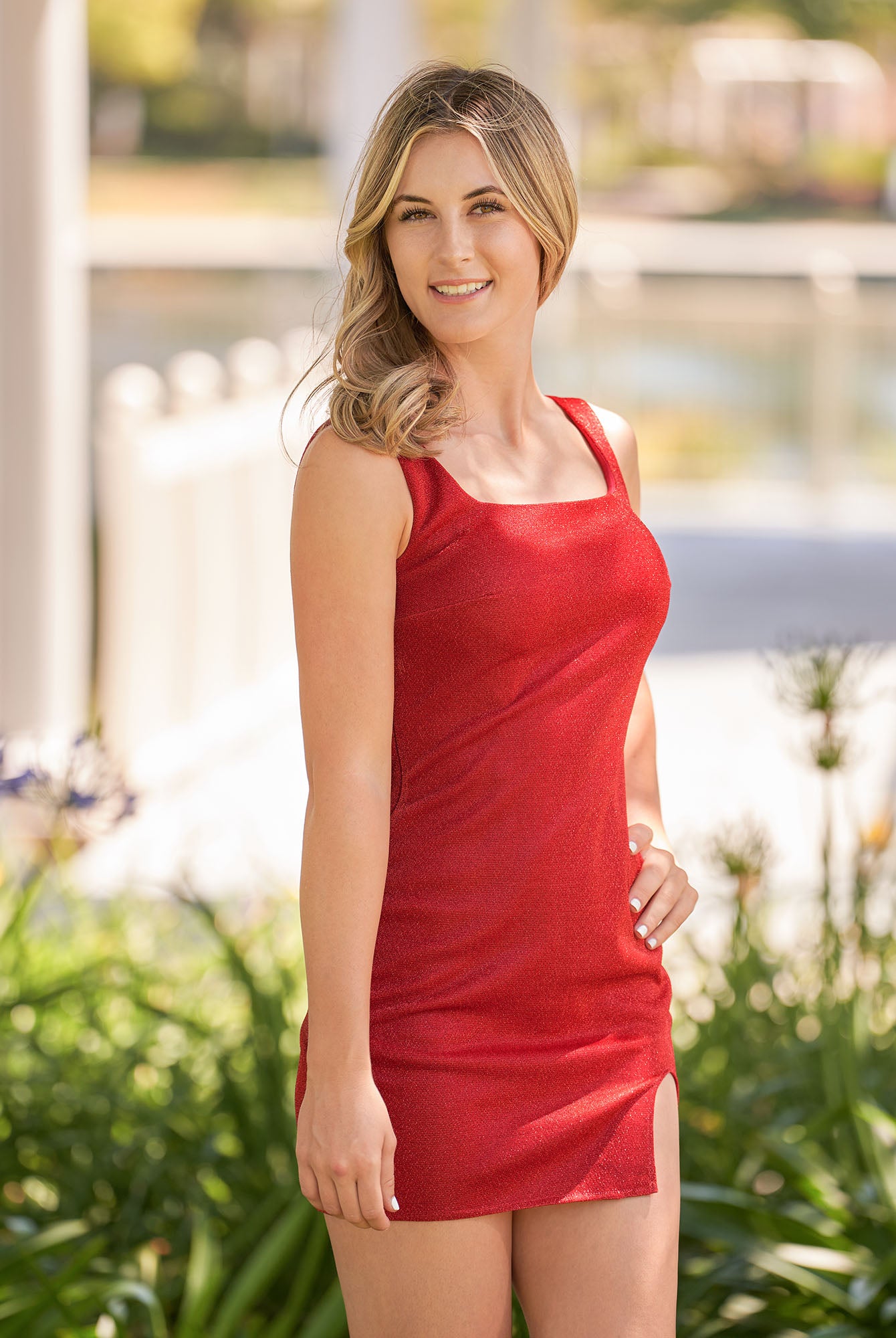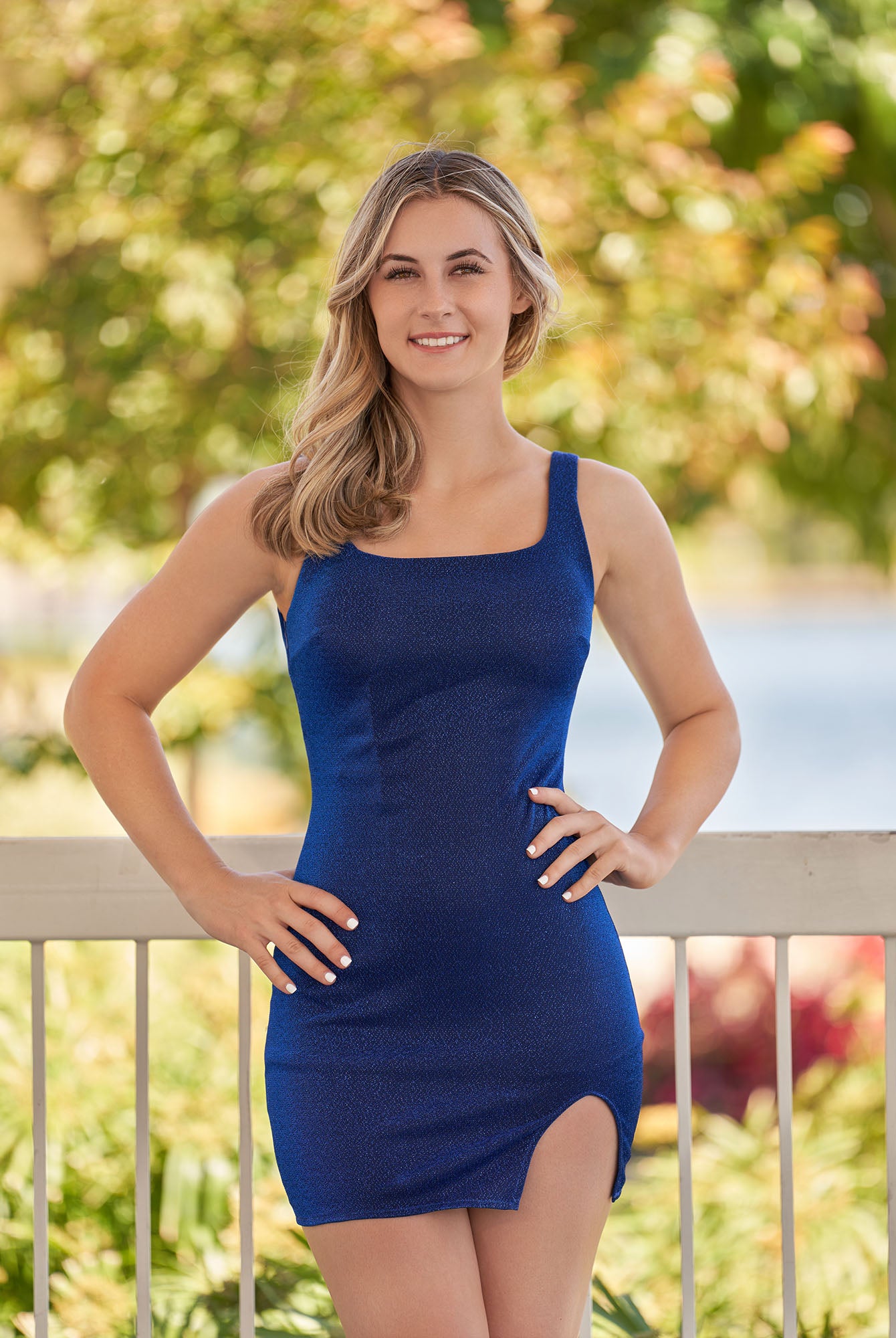 Glitter Sheath Square Neck Navy Blue Short Homecoming Dress With Slit