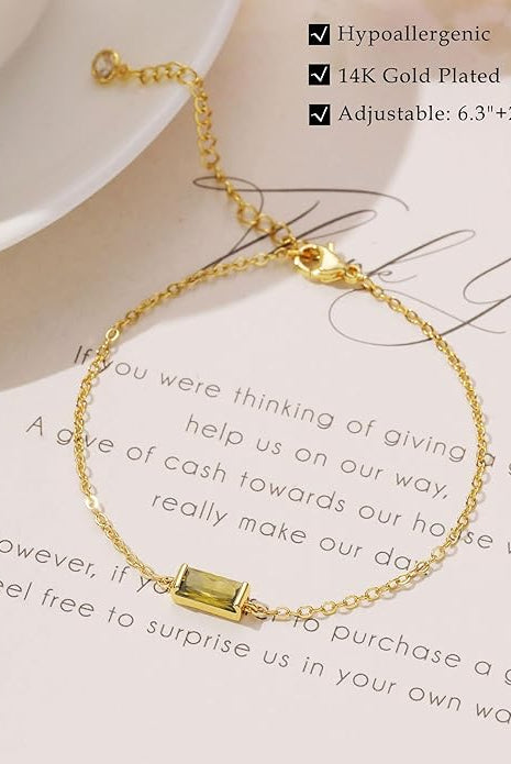 Gold Adjustable Chain Bracelets with Birthstone