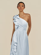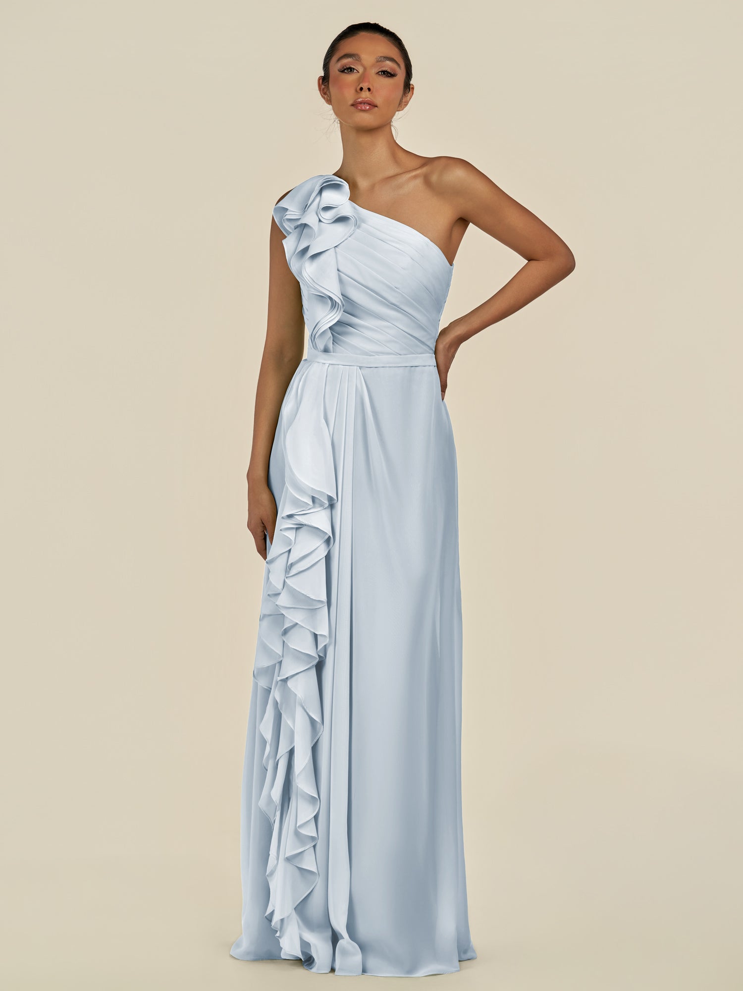 Assou | Ice - A Line One Shoulder Chiffon Pleated Ruffles Long Bridesmaid Dress with Slit