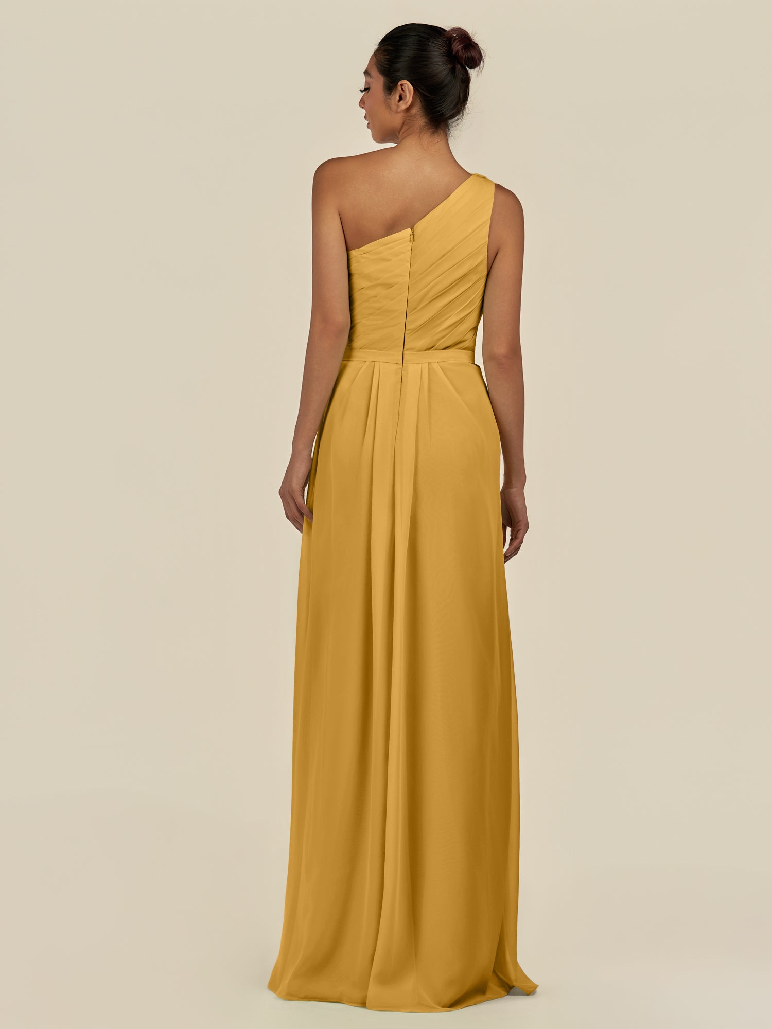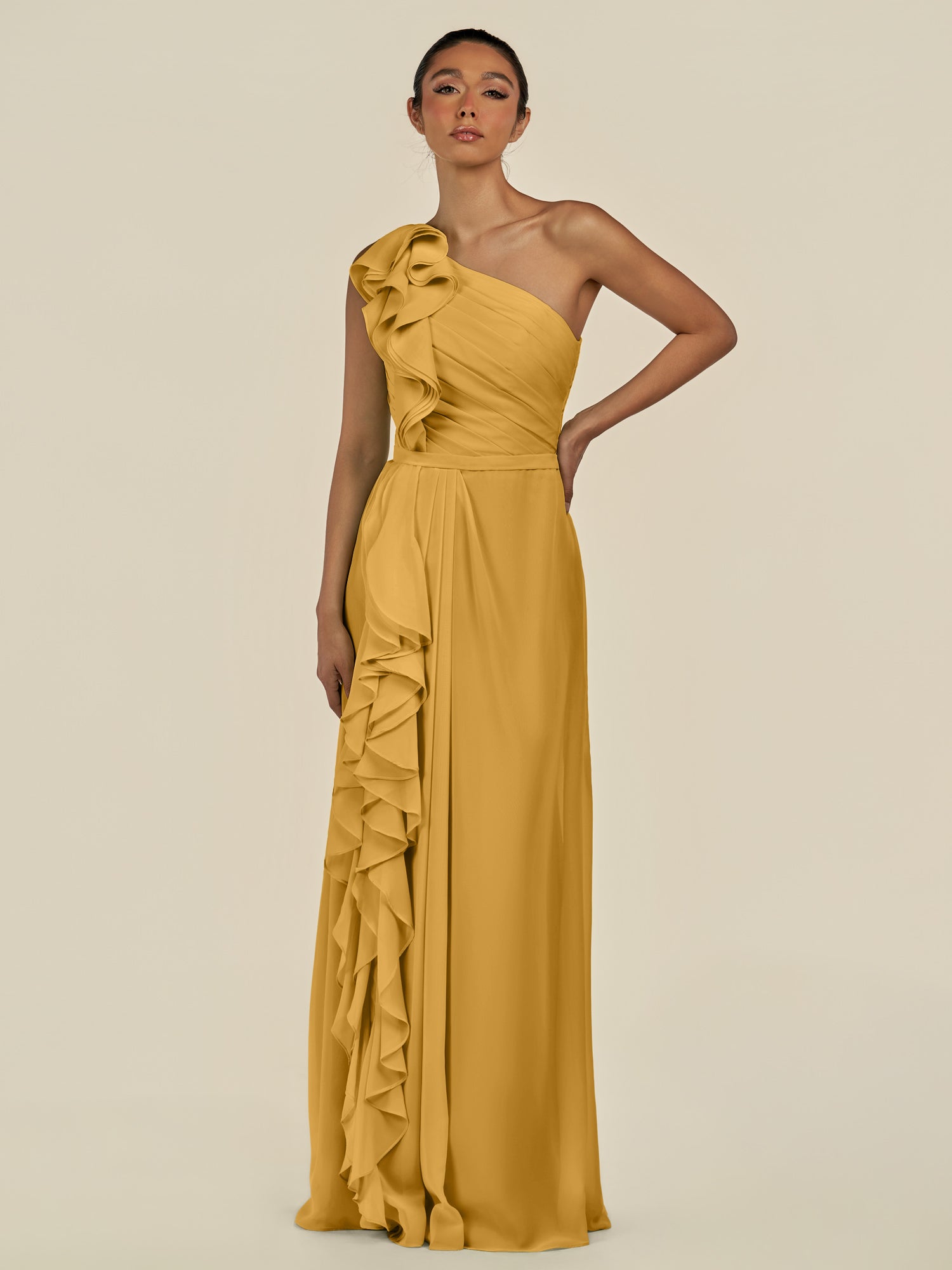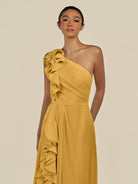 Assou | Marigold - A Line One Shoulder Chiffon Pleated Ruffles Long Bridesmaid Dress with Slit