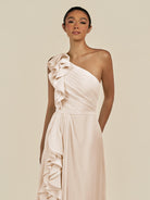 Assou | Pale Blush - A Line One Shoulder Chiffon Pleated Ruffles Long Bridesmaid Dress with Slit