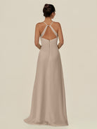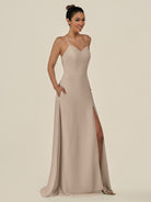 Cerin | Almond - Sheath V Neck Chiffon Long Bridesmaid Dress with Slit