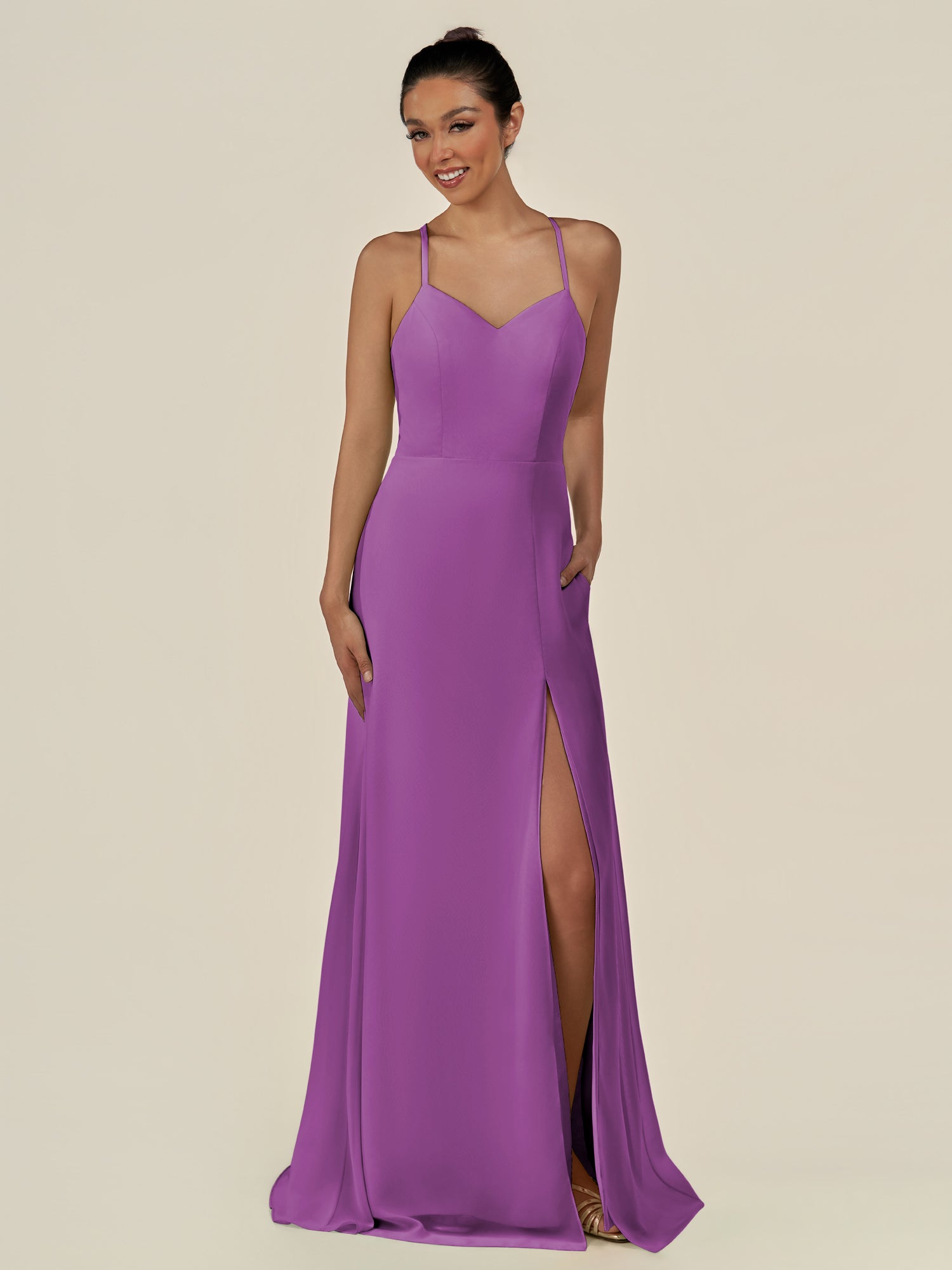 Cerin | Amethyst - Sheath V Neck Chiffon Long Bridesmaid Dress with Slit