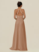 Cerin | Bronzer - Sheath V Neck Chiffon Long Bridesmaid Dress with Slit