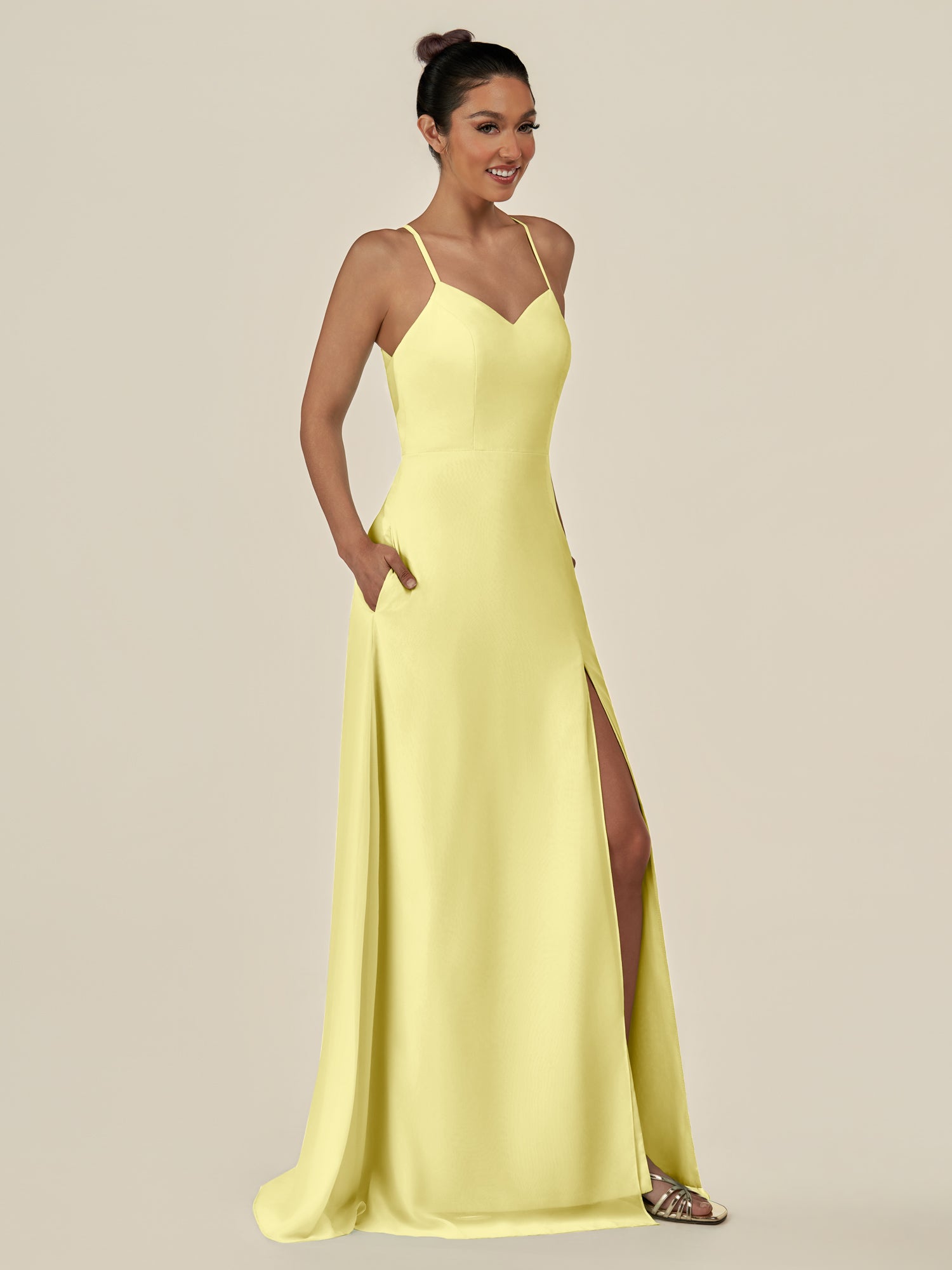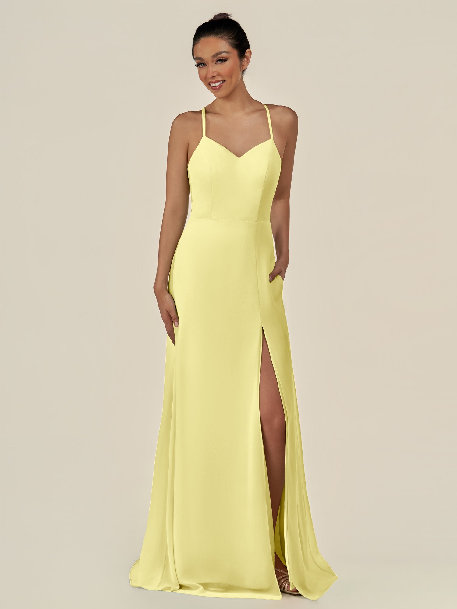 Cerin | Buttercup - Sheath V Neck Chiffon Long Bridesmaid Dress with Slit