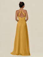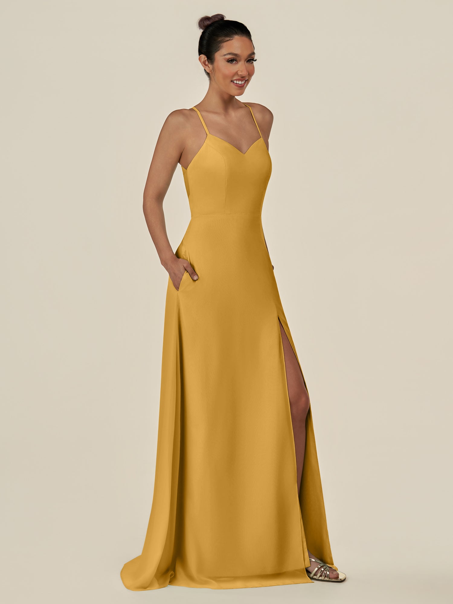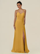 Cerin | Marigold - Sheath V Neck Chiffon Long Bridesmaid Dress with Slit