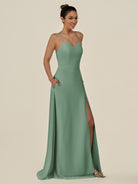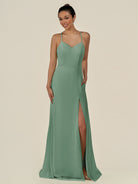 Cerin | Sea Glass - Sheath V Neck Chiffon Long Bridesmaid Dress with Slit