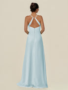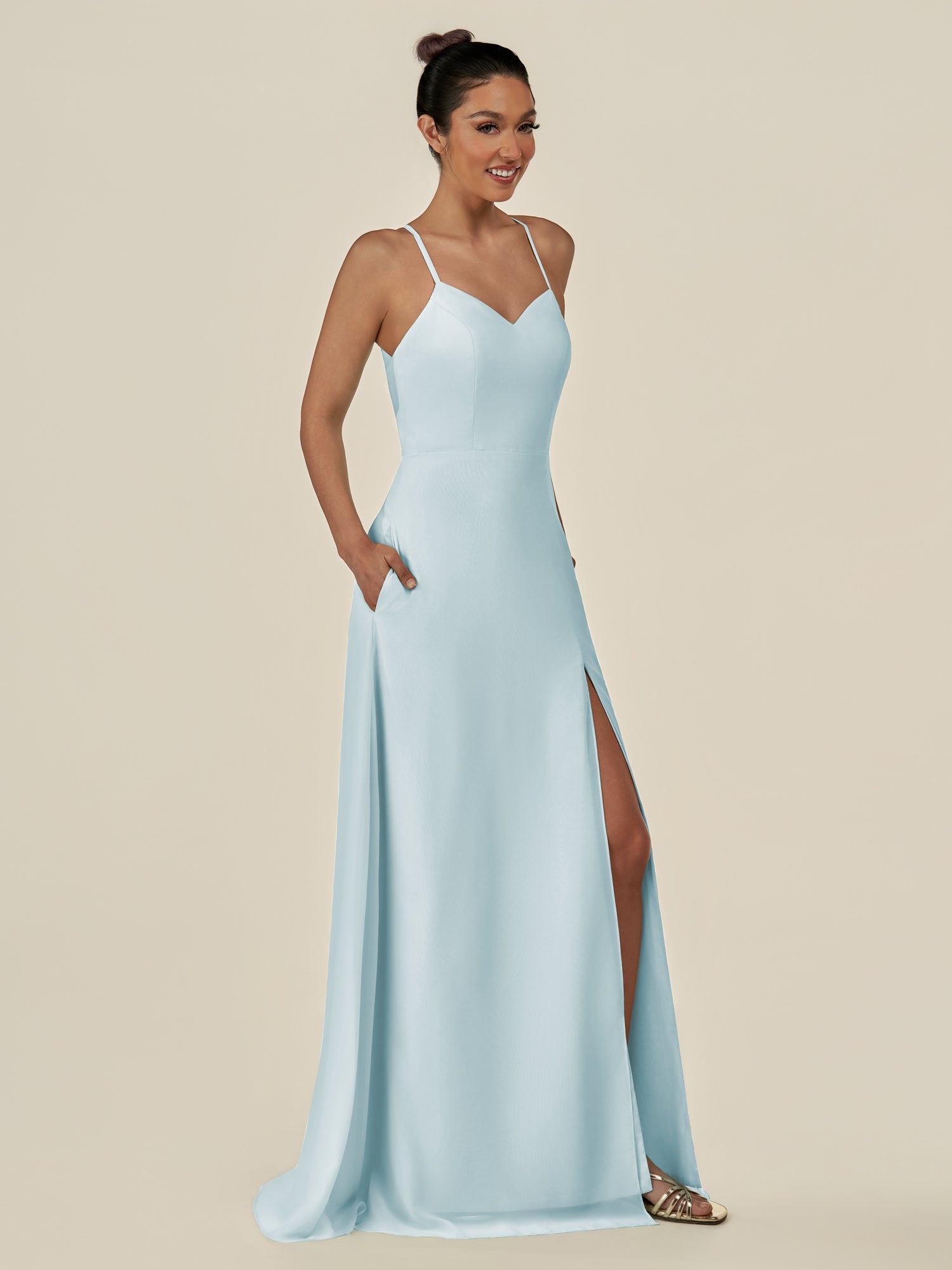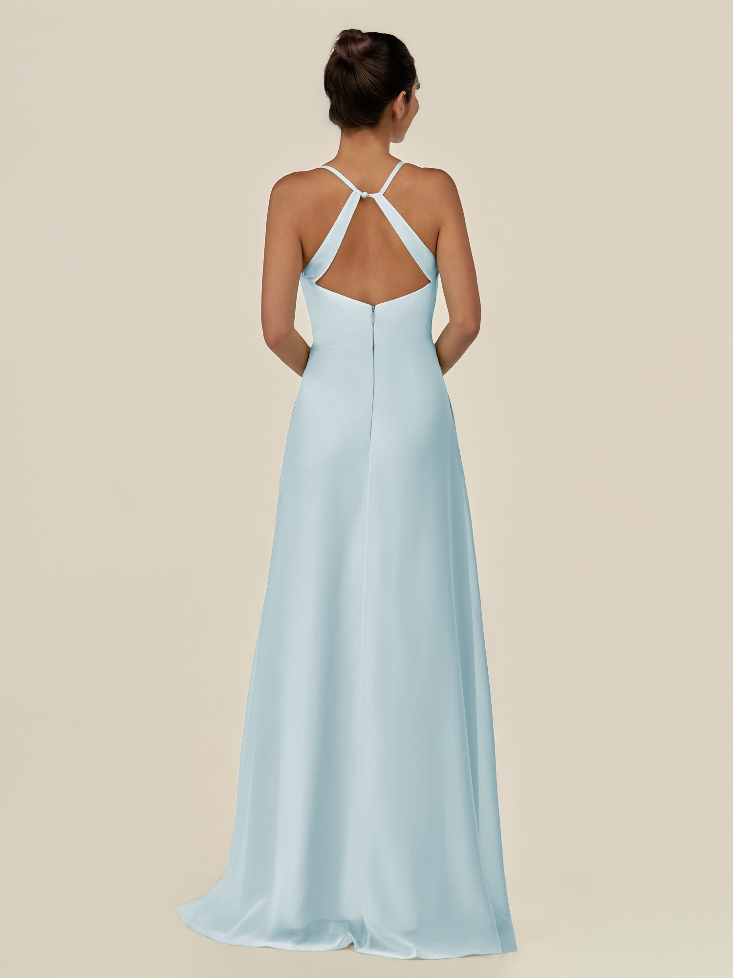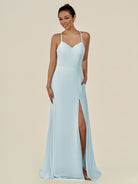 Cerin | Sky Blue - Sheath V Neck Chiffon Long Bridesmaid Dress with Slit