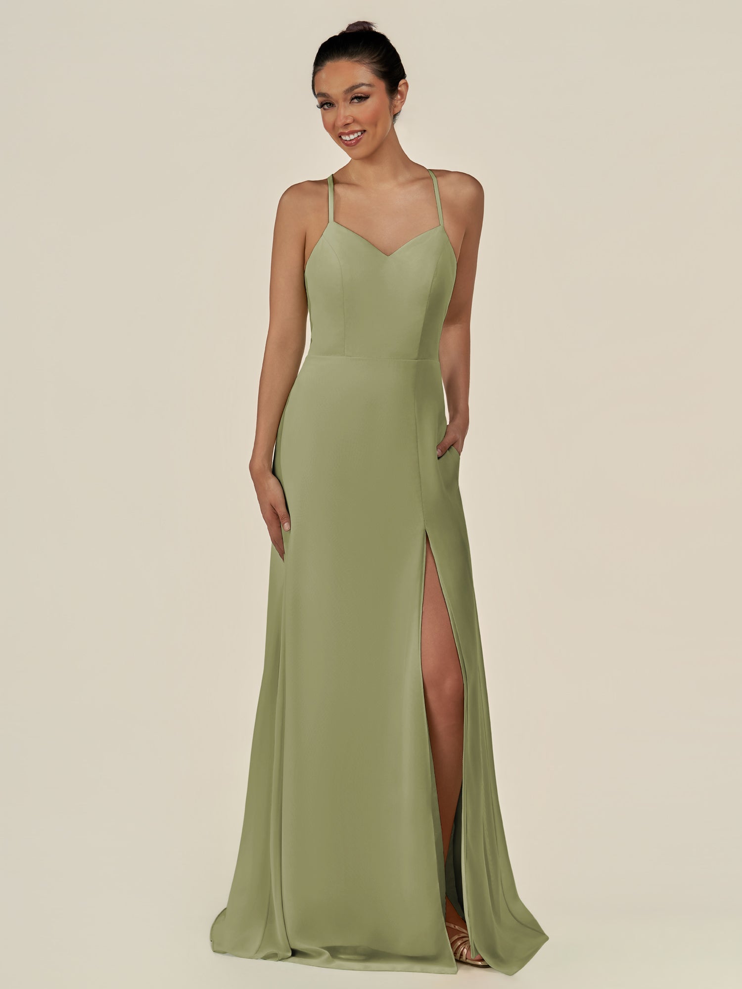 Cerin | Thyme - Sheath V Neck Chiffon Long Bridesmaid Dress with Slit