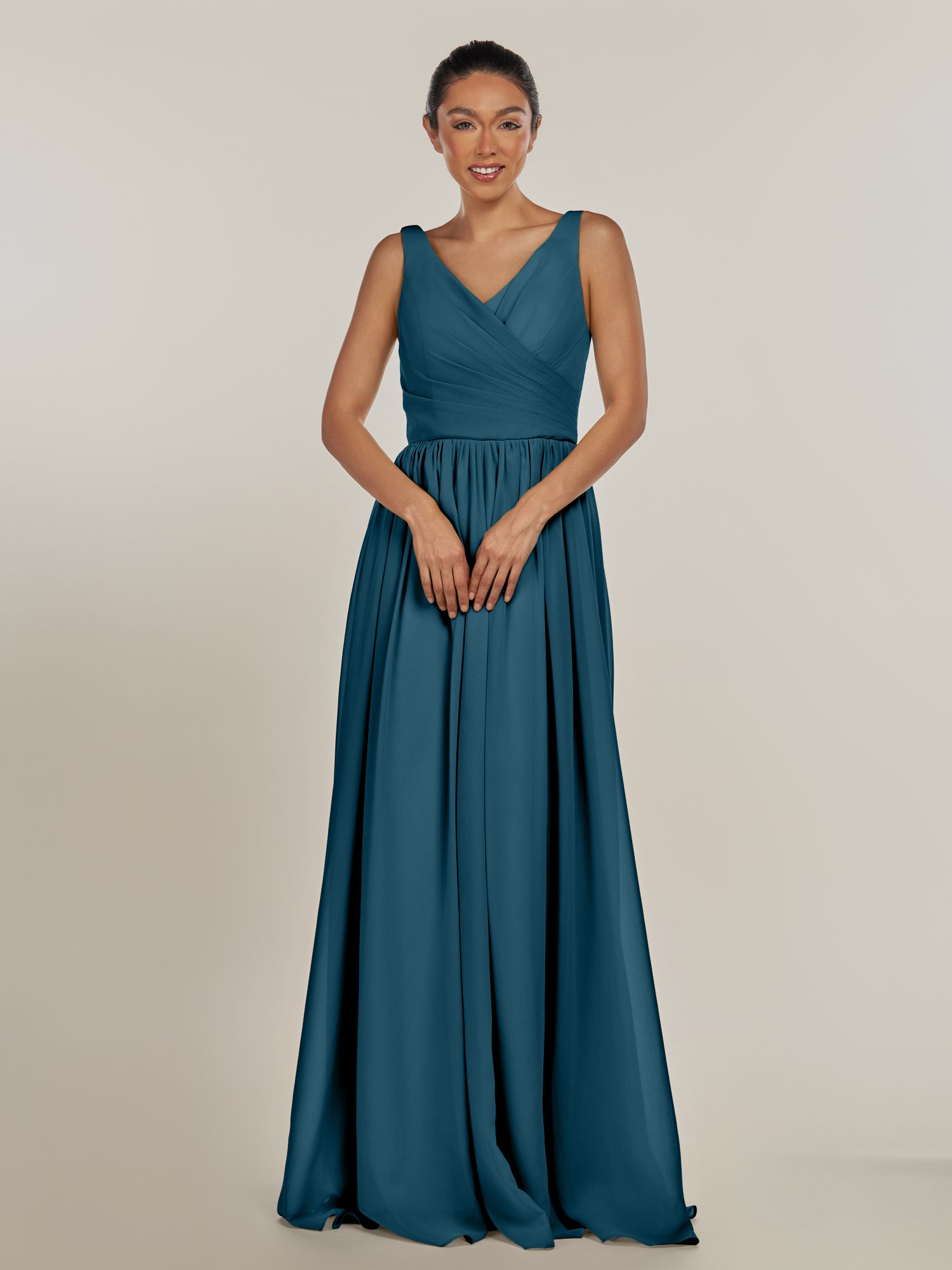 Cova | Dark Teal - A Line Chiffon V Neck Long Bridesmaid Dress with Slit