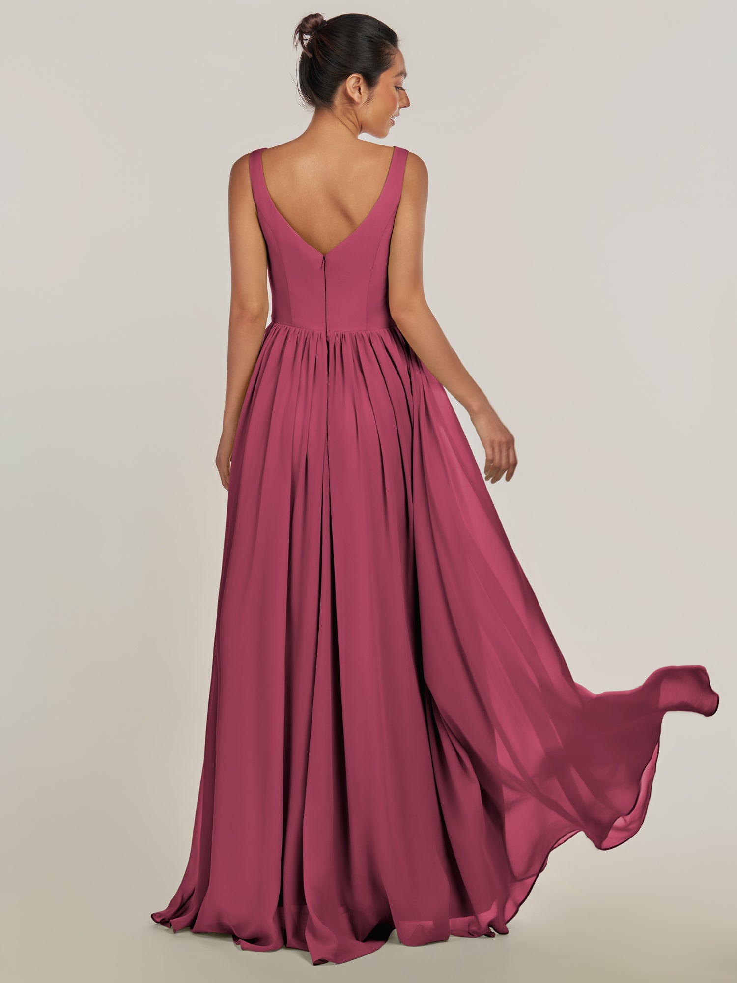Cova | Desert Rose - A Line Chiffon V Neck Long Bridesmaid Dress with Slit