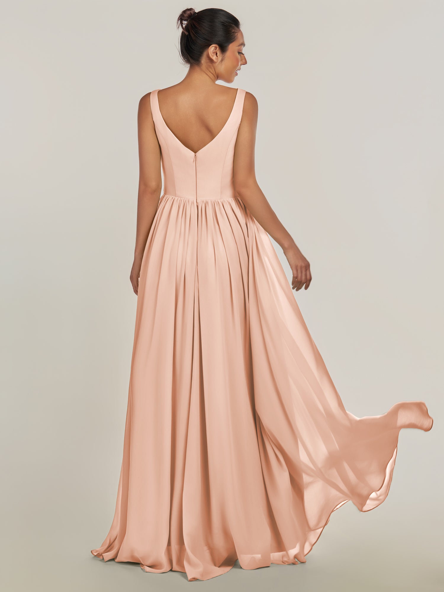 Cova | English Rose - A Line Chiffon V Neck Long Bridesmaid Dress with Slit