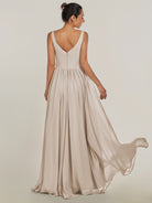 Cova | Frost - A Line Chiffon V Neck Long Bridesmaid Dress with Slit