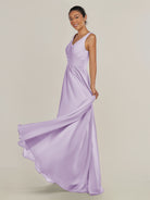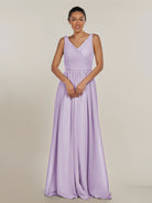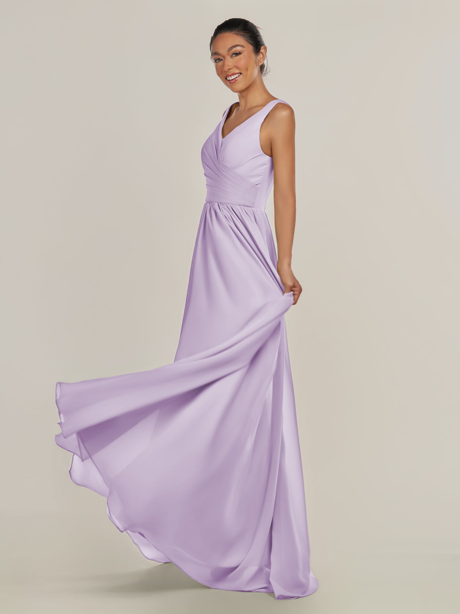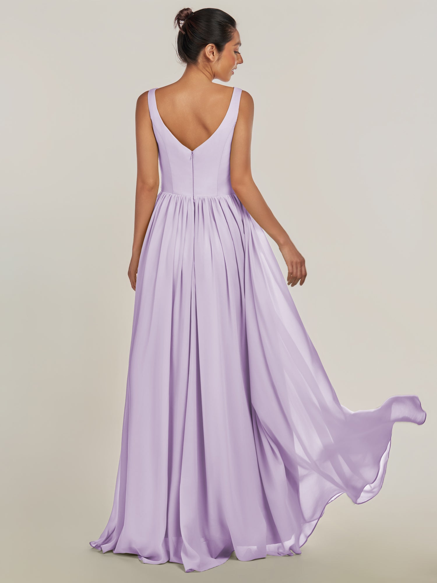 Cova | Lavender - A Line Chiffon V Neck Long Bridesmaid Dress with Slit
