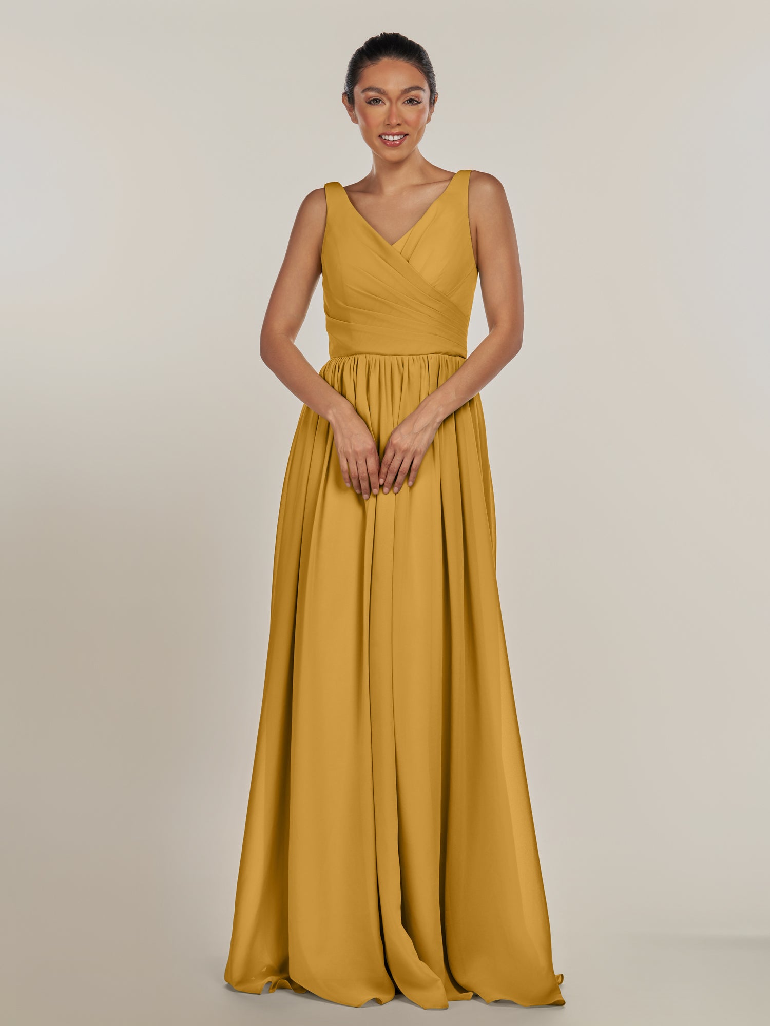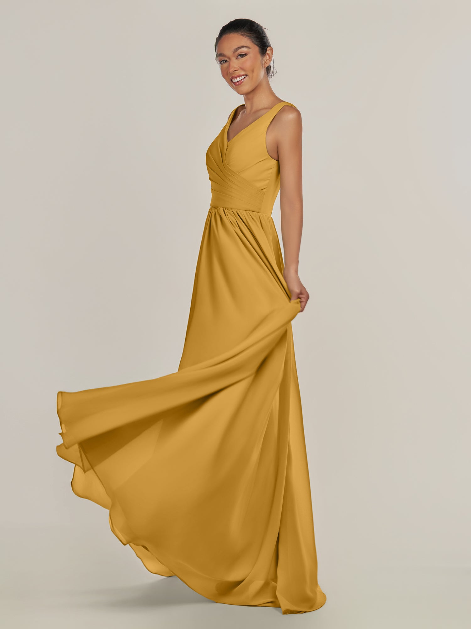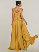 Cova | Marigold - A Line Chiffon V Neck Long Bridesmaid Dress with Slit