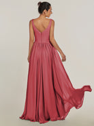 Cova | Merlot - A Line Chiffon V Neck Long Bridesmaid Dress with Slit