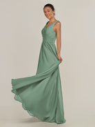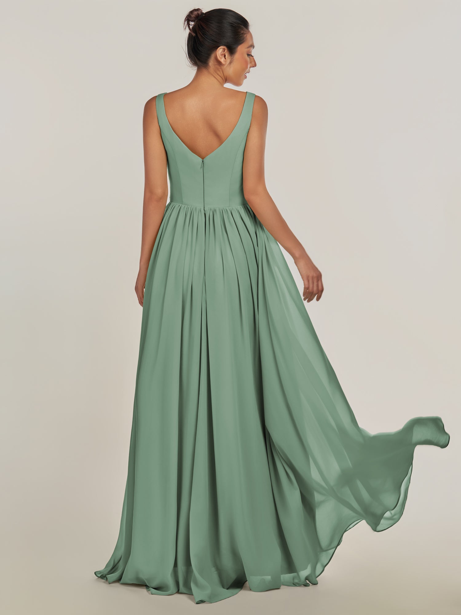 Cova | Sea Glass - A Line Chiffon V Neck Long Bridesmaid Dress with Slit