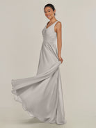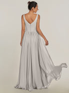 Cova | Silver - A Line Chiffon V Neck Long Bridesmaid Dress with Slit
